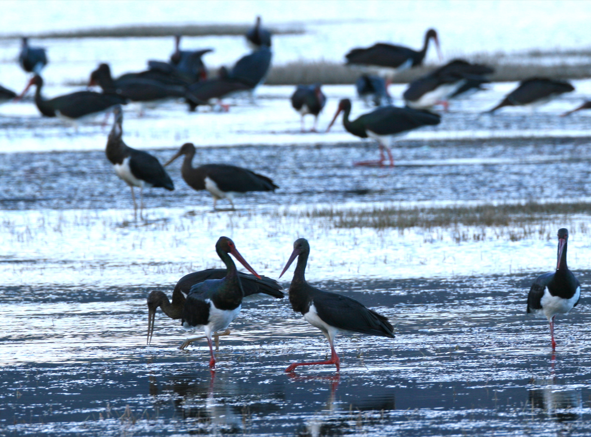 正是万物凋零的季节,京南拒马河的黑鹳已经开始相亲了。