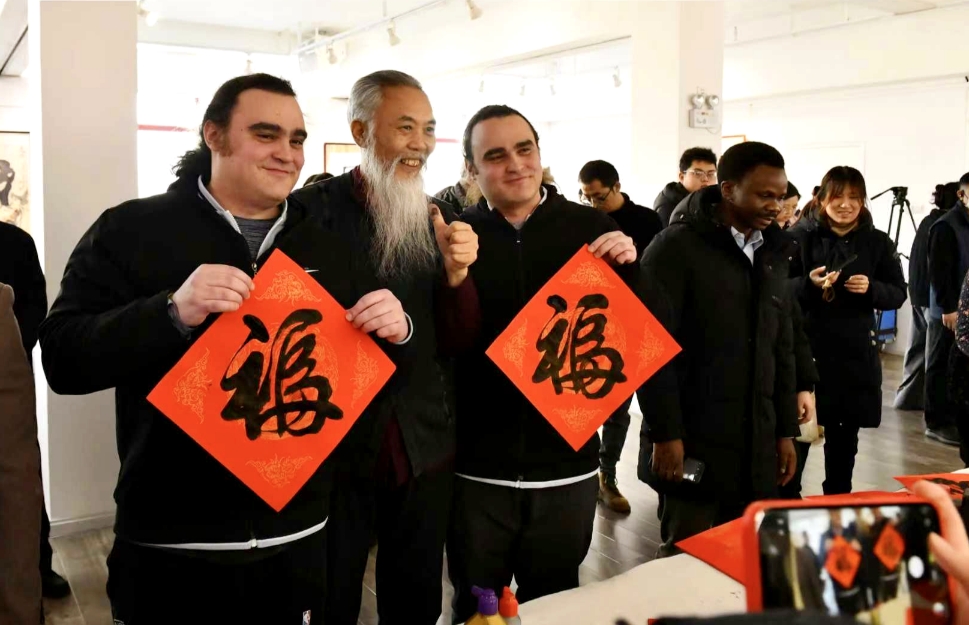 在自由创作环节,书法家们展纸挥毫,笔墨流转之间,一幅幅寓意吉祥的春联、一个个饱满浑厚的“福”字跃然纸上。现场嘉宾纷纷驻足欣赏、互动交流,或提笔体验,或合影留念,在浓浓墨香中共享一份跨越国界的文化温情。