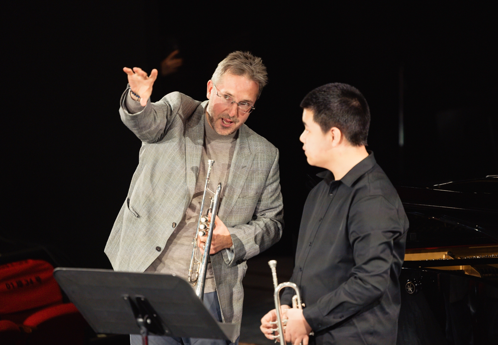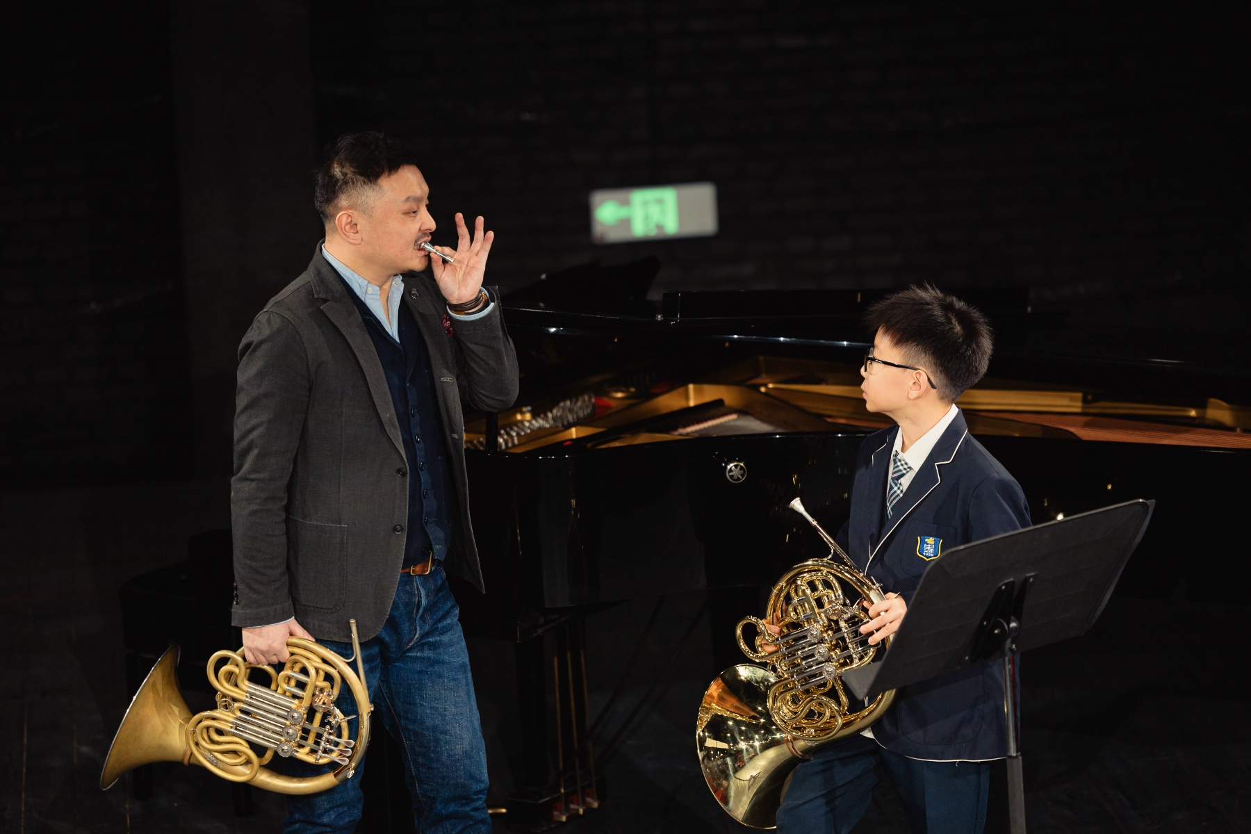 “音乐的本质是人与人的共鸣,这是AI无法取代的。”活动现场,天津茱莉亚圆号预科教师文杨为圆号学生授课,他从作品理解、演奏技巧到音乐表达进行了细致指导,更着重强调了聆听与合作的艺术真谛。来自俄罗斯的天津茱莉亚小号常驻教师谢尔盖·图特金(Sergey Tyuteykin)则以国际化的教学视野,为小号学生拆解演奏难点。两位教师还分享了天津茱莉亚预科的特色课程体系——包括合唱、室内乐、乐团等注重协作的教学内容,让现场学生深刻体会到“艺术成长离不开交流与共情”。