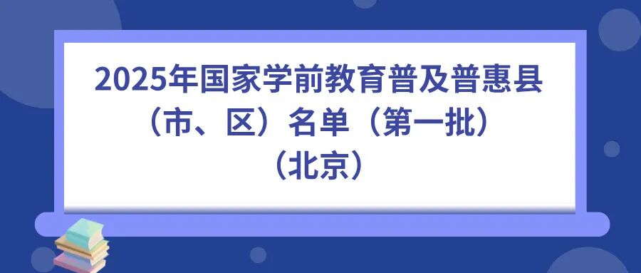 近日,通过县级自评、市级初核、省级评估、国家认定的程序,教育部发布《2025年国家学前教育普及普惠县(市、区)名单(第一批)》,全国共427个县(市、区)入选。其中,北京市有6个区入选,一起来看详细名单↓↓↓