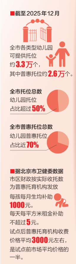 据市教委介绍,2026年北京市将重点优化托幼服务供给,坚持公办园托班“应设尽设”。同时推动普惠园面向周边社区开展托育亲子活动,满足市民“幼有优育”的期盼。
