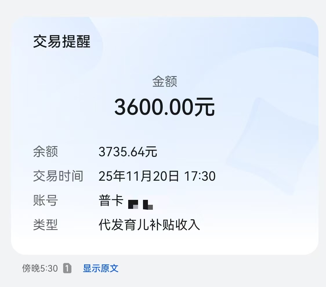 “您的育儿补贴已发放至您指定的银行账户……”回想起去年11月,自己手机里弹出的这笔“福利”,家住朝阳区的年轻妈妈宋玉欣仍记得当时的喜悦之情:“先是‘哇’了一下,然后觉得心里暖暖的。”