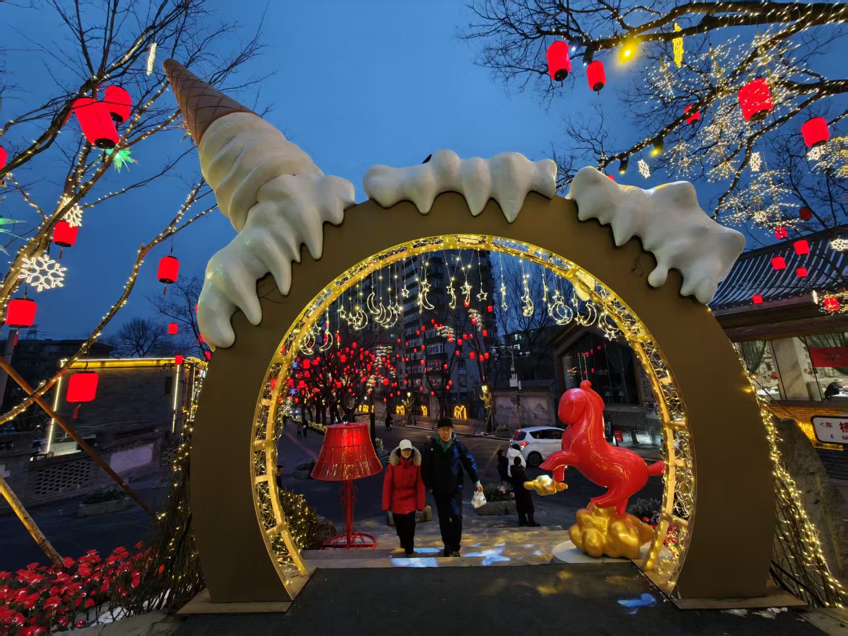 古道花灯如昼,今宵月满京西。昨晚,“我爱模式口”2026年第三届模式口新春灯会点亮仪式温情启幕,十二组特色灯景同步点亮京西冬夜,流光溢彩的光影画卷,吸引众多市民游客驻足观赏、打卡留念。本届灯会紧扣丙午马年生肖主题,精心打造“入境・瑞雪迎春”“寻迹・古道生花”“归心・福满人间”三大篇章,将模式口的历史文脉与现代光影艺术深度融合。据悉,本届灯会将持续至春节后,不妨跟随石景山拍客的镜头,沉浸式邂逅这场京西新春光影盛宴!