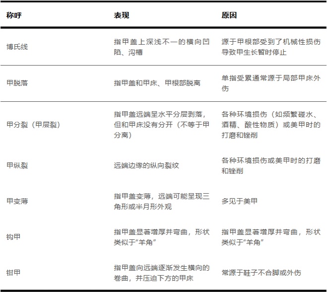 这些变形与甲损伤(包括急性创伤、重复性微创伤、化学损伤)之间存在紧密的因果关系。