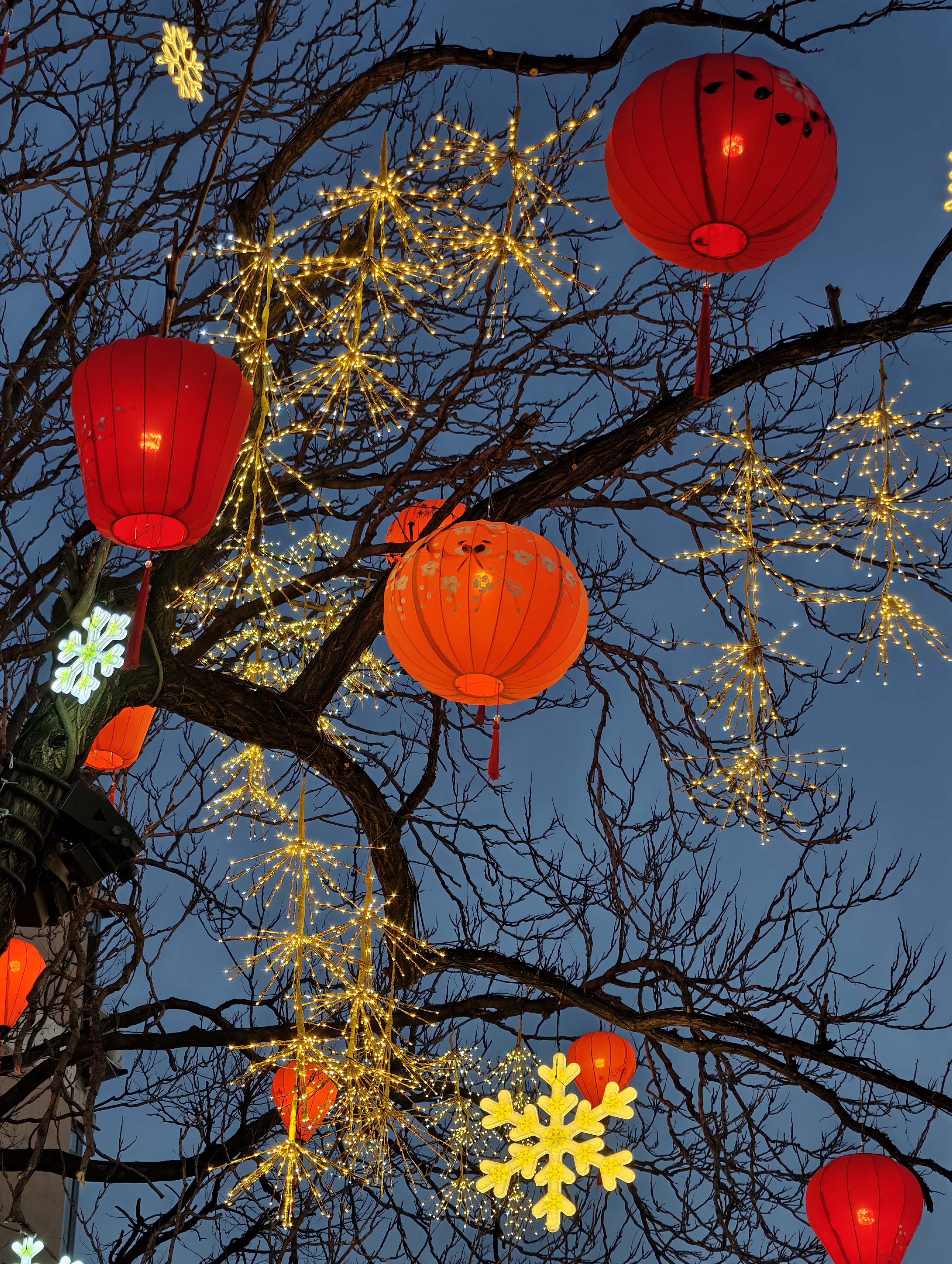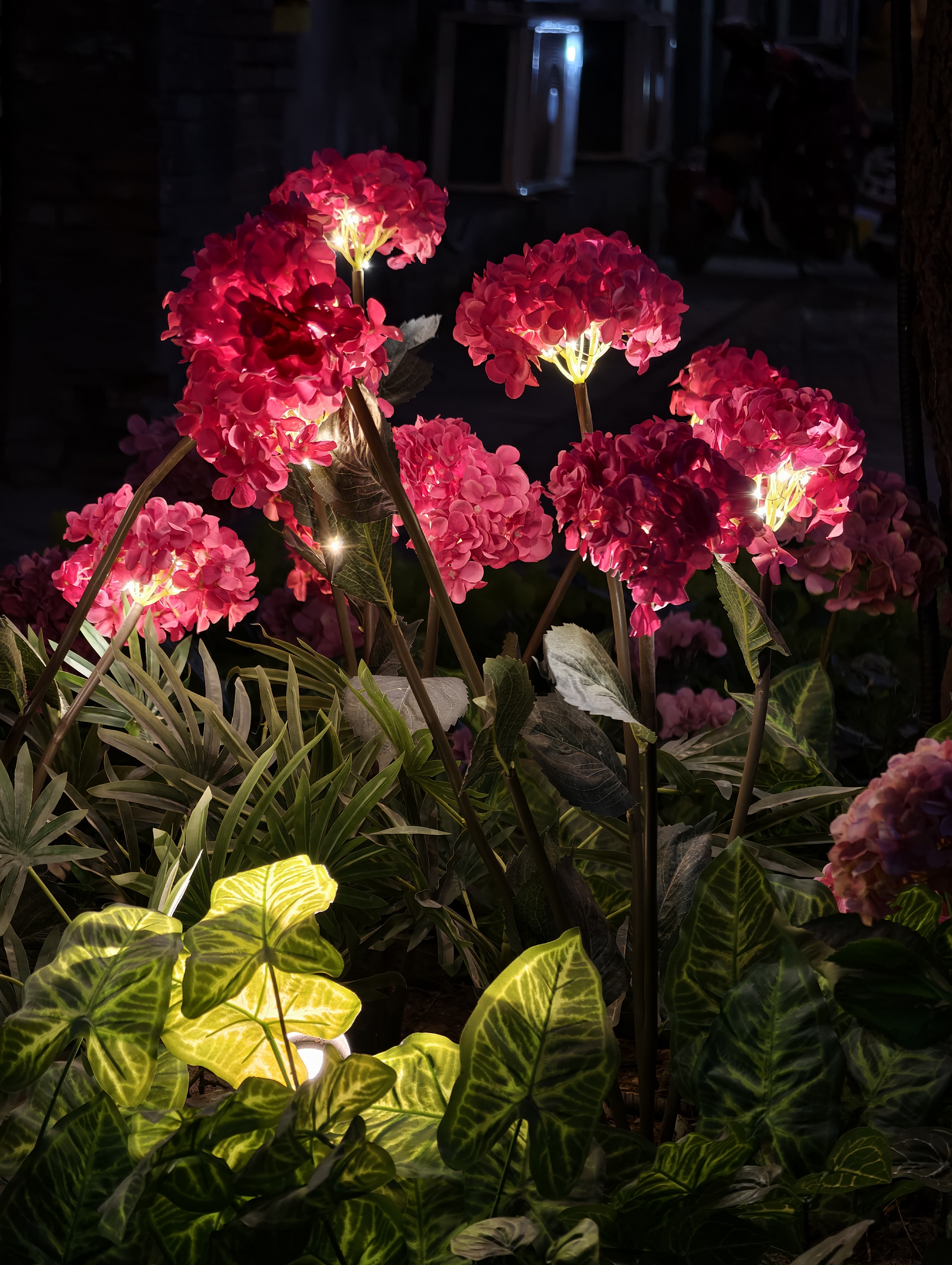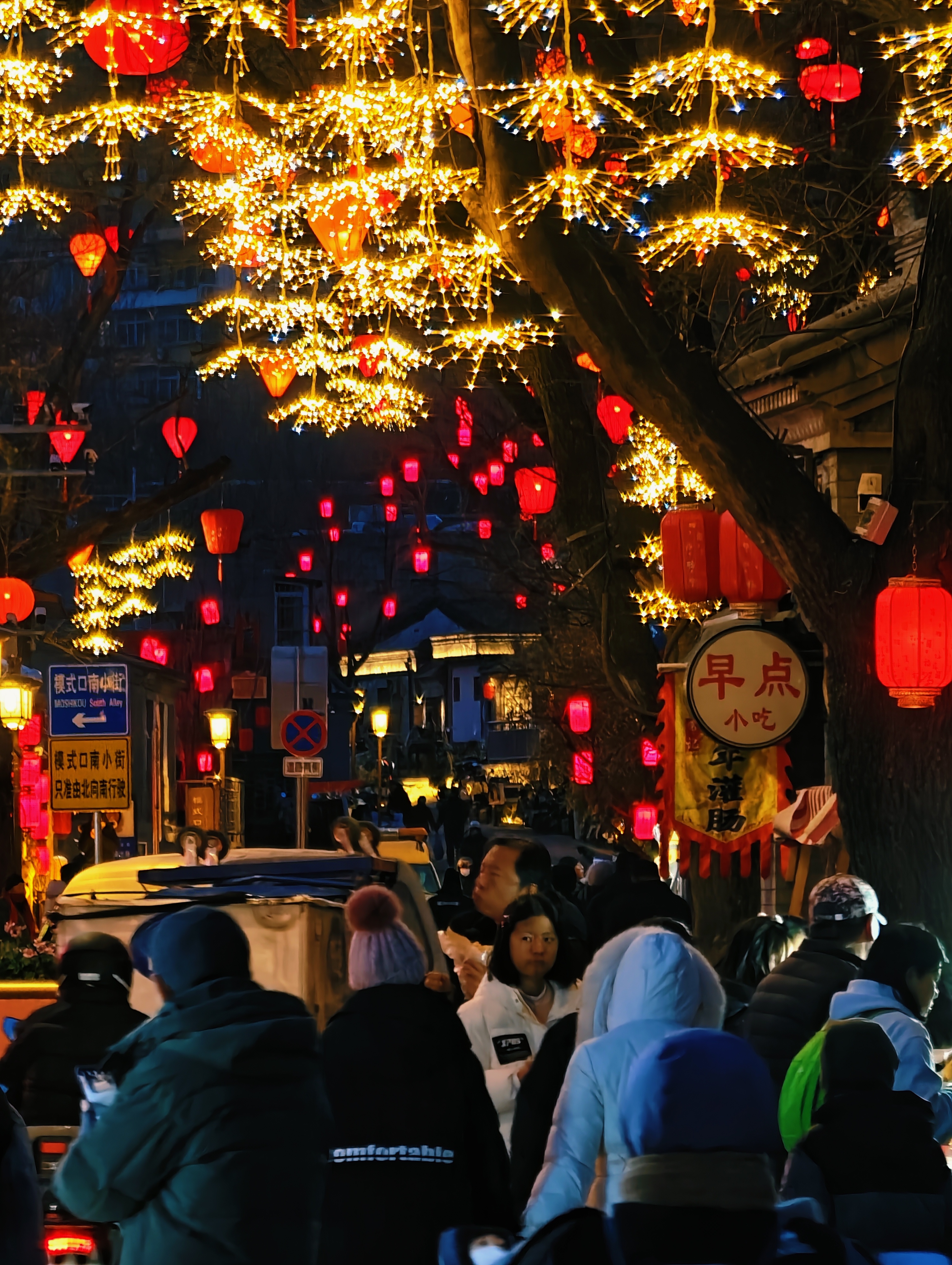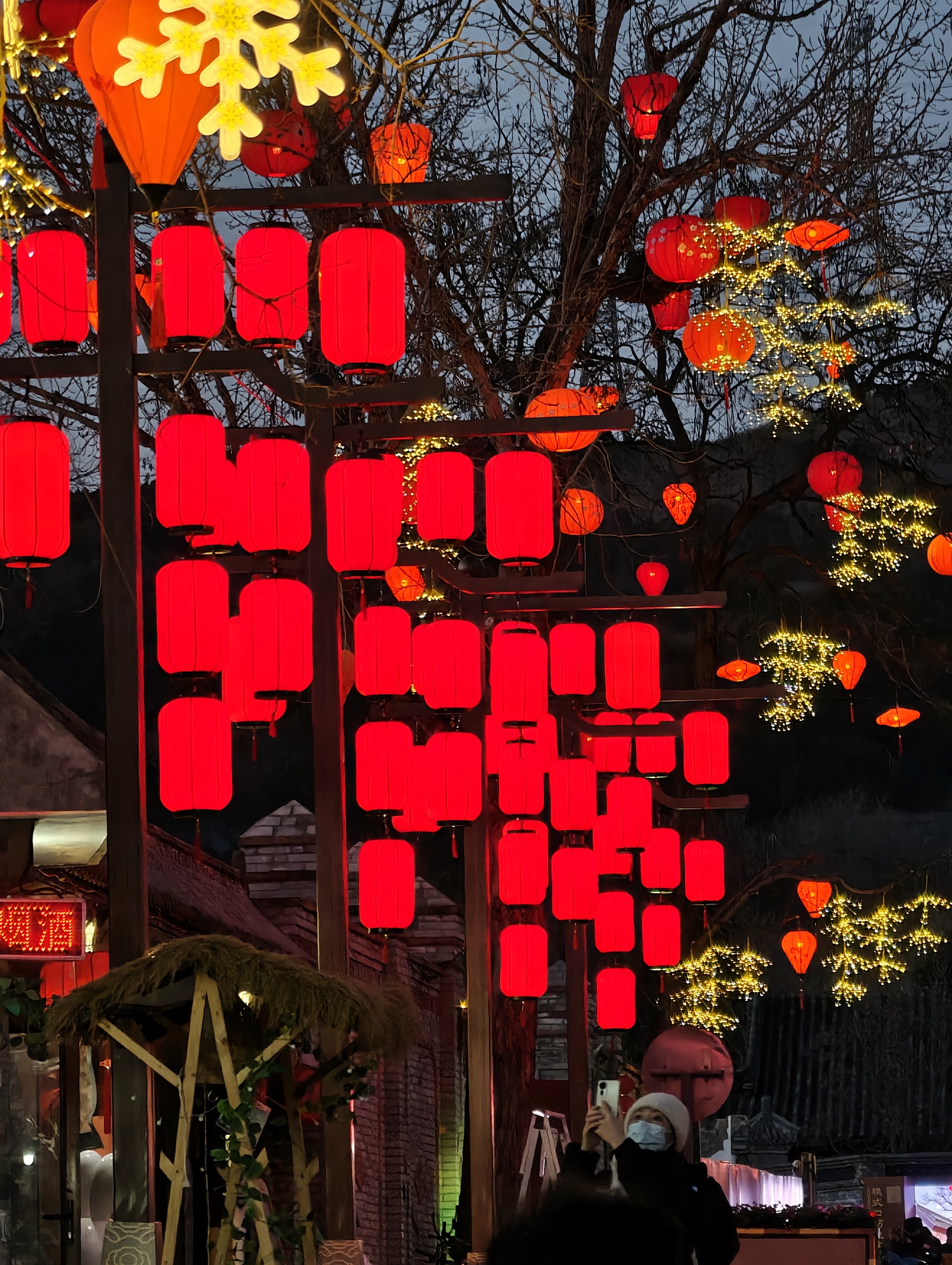 夜幕降临,石景山驼铃古道模式口大街华灯初上,大红灯笼与街边彩灯交相辉映,宛如繁星点点洒落人间,将整条街装点得如梦似幻。“花漾模式口”廊架流光溢彩,“一路繁花”景观铺满墙面,光影艺术与东方美学在此交融,让人仿佛穿越回那个繁华年代 。