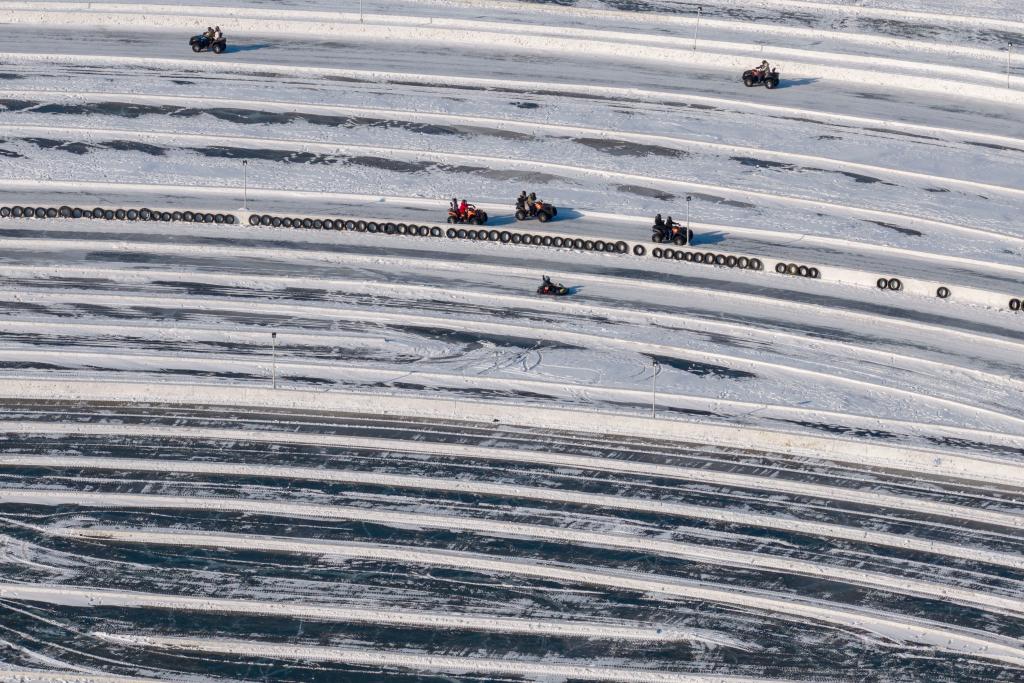 1月1日,游客在松花江哈尔滨段江面游玩(无人机照片)。新华社记者 张涛 摄