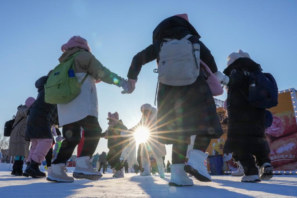 1月1日,人们在2026第八届哈尔滨松花江冰雪嘉年华园区内体验冰雪娱乐项目。新华社记者 张涛 摄