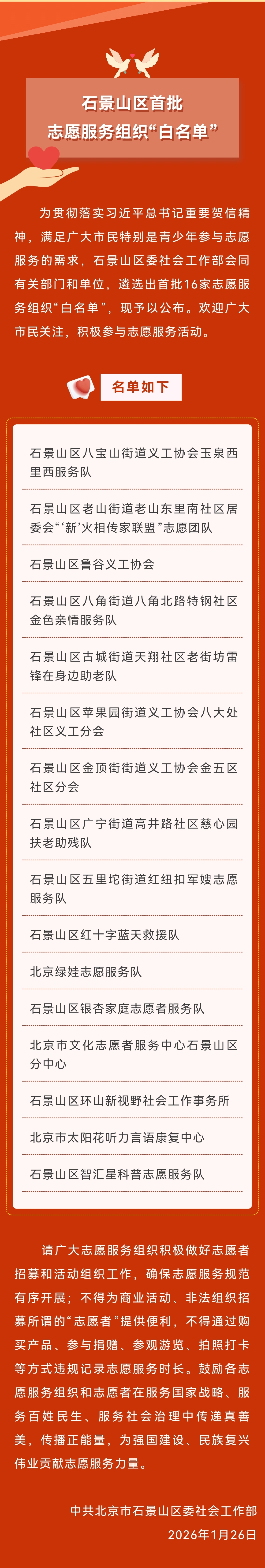 石景山区首批志愿服务组织“白名单”公布