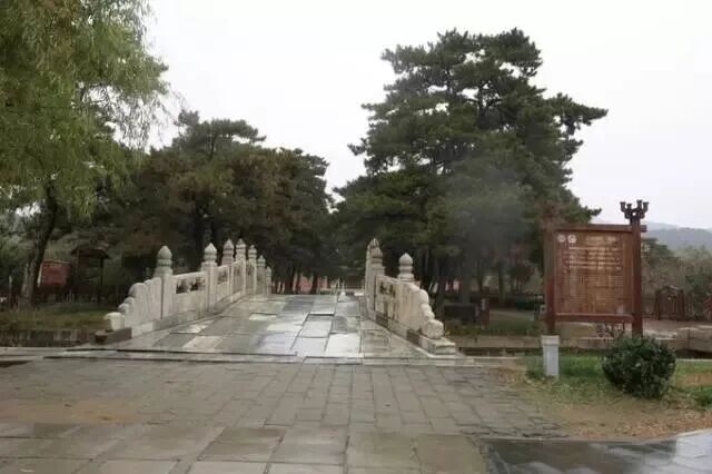 孝陵五孔桥北行约400米,就见到了架设在马槽沟上的三路三孔桥。清制,帝后陵寝宫门前(孝陵在神道碑亭后)设三孔桥。帝陵三路,后陵一路。