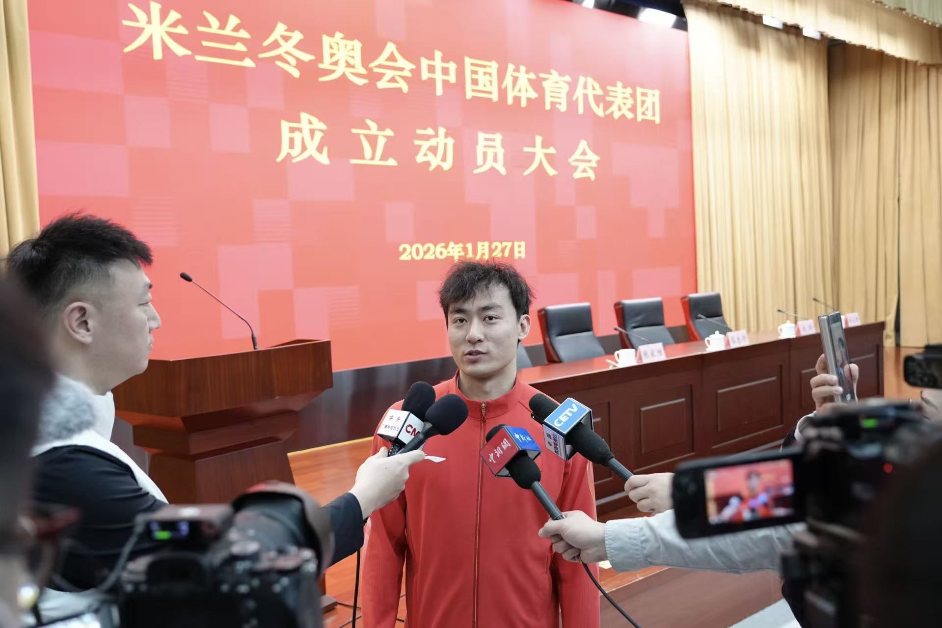1月27日上午,第25届冬奥会中国体育代表团在京正式成立。男子钢架雪车名将殷正在成立大会上代表运动员发言,会后接受采访时,他直言:冬奥会的首要目标是站上领奖台,同时会尽可能去实现金牌的突破。