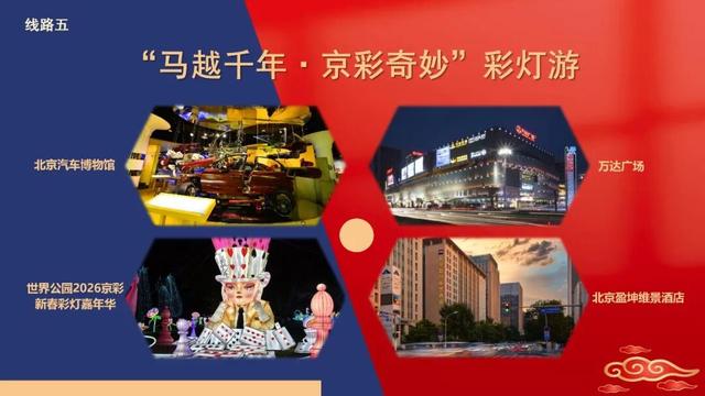 北京汽车博物馆→万达广场→世界公园2026京彩新春彩灯嘉年华→北京盈坤维景酒店