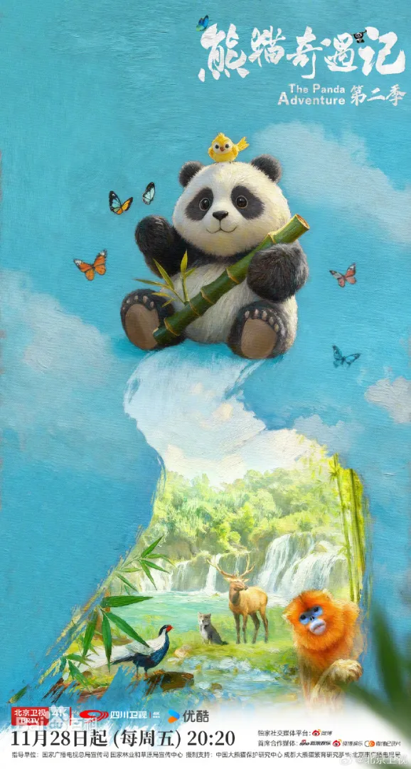 北京市广电局重点资助项目、“北京大视听”重点文艺项目《熊猫奇遇记(第二季)》2025年11月28日起每周五登陆北京卫视、四川卫视,并同步上线优酷及YouTube等海内外平台。2026年1月16日节目圆满收官,创下电视端最高收视率2.76%、微博主话题阅读量突破7亿的好成绩,全网互动热烈,成功将“熊猫热”升华为一场全民参与的生态文化共鸣。