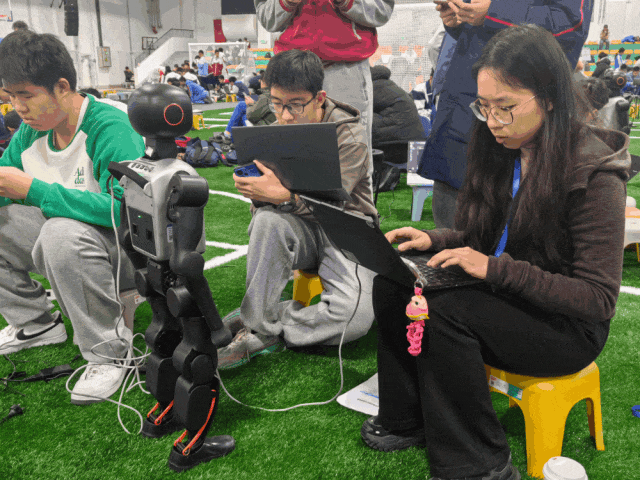 “人形机器人足球赛不仅考验选手的软件编程技能,更对团队战术配合提出了极高要求。”来自北京十一学校国际部的学生薛晓知说,“虽然我之前对机器人领域没有太深入的了解,但一直对机器人控制理论中的博弈论与路径规划等问题很感兴趣。这次活动让我真切地看到,算法是如何一步步落地到真实机器人的每一个动作节点上的——从移动、踢球到最终射门,整个过程既扎实又充满成就感。”