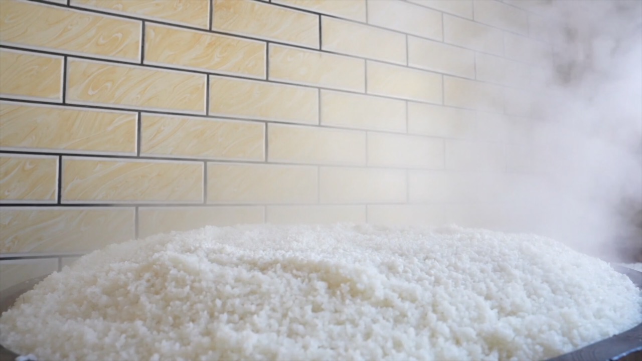 蒸熟的糯米倒入石臼,反复捶打赋予了糍粑灵魂——拉之如丝,食之柔韧,软嫩可口。这是机器无法复制的口感与温情。打好的糯米团放到案板上,被一双双巧手迅速捏成型,圆润可爱,寓意团圆。糍粑有很多种吃法,可煎可烤,可煮可炸,其中炭火烤糍粑在当地比较常见。烤好的糍粑配上豆腐乳或者酸萝卜,吃起来别有一番味道。