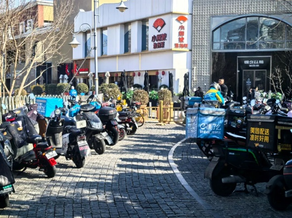 麦子店蓝色港湾为外卖小哥设置了专属的停车区