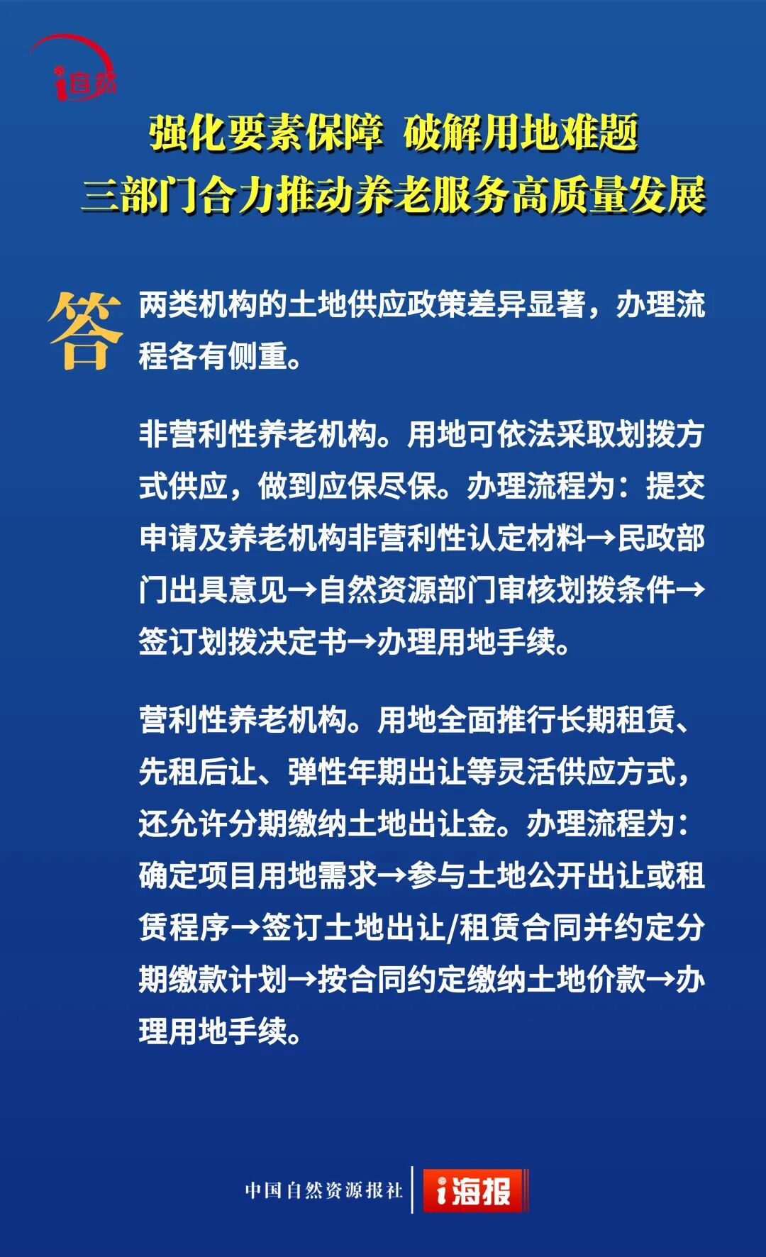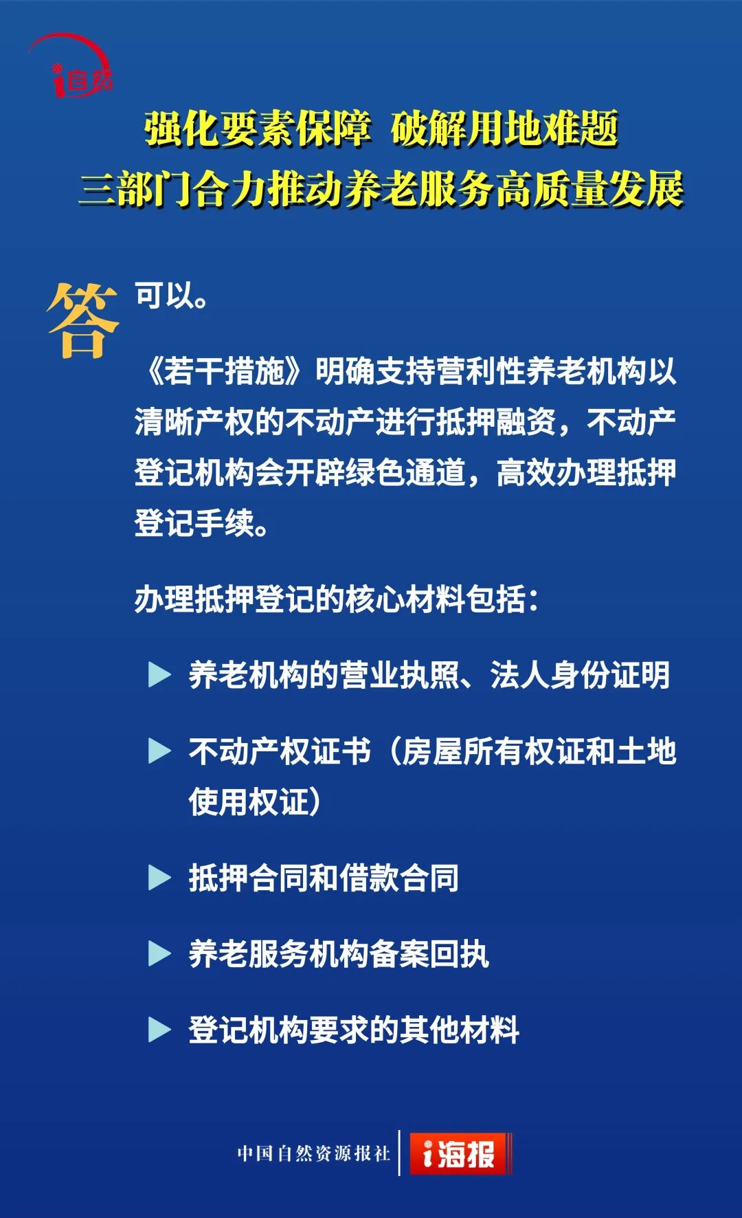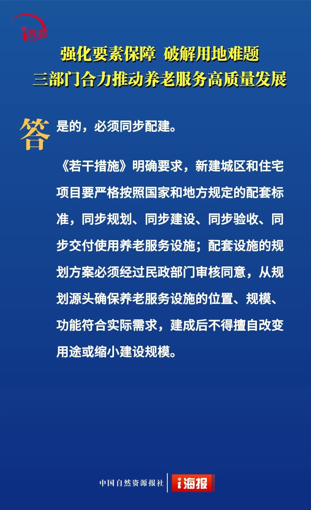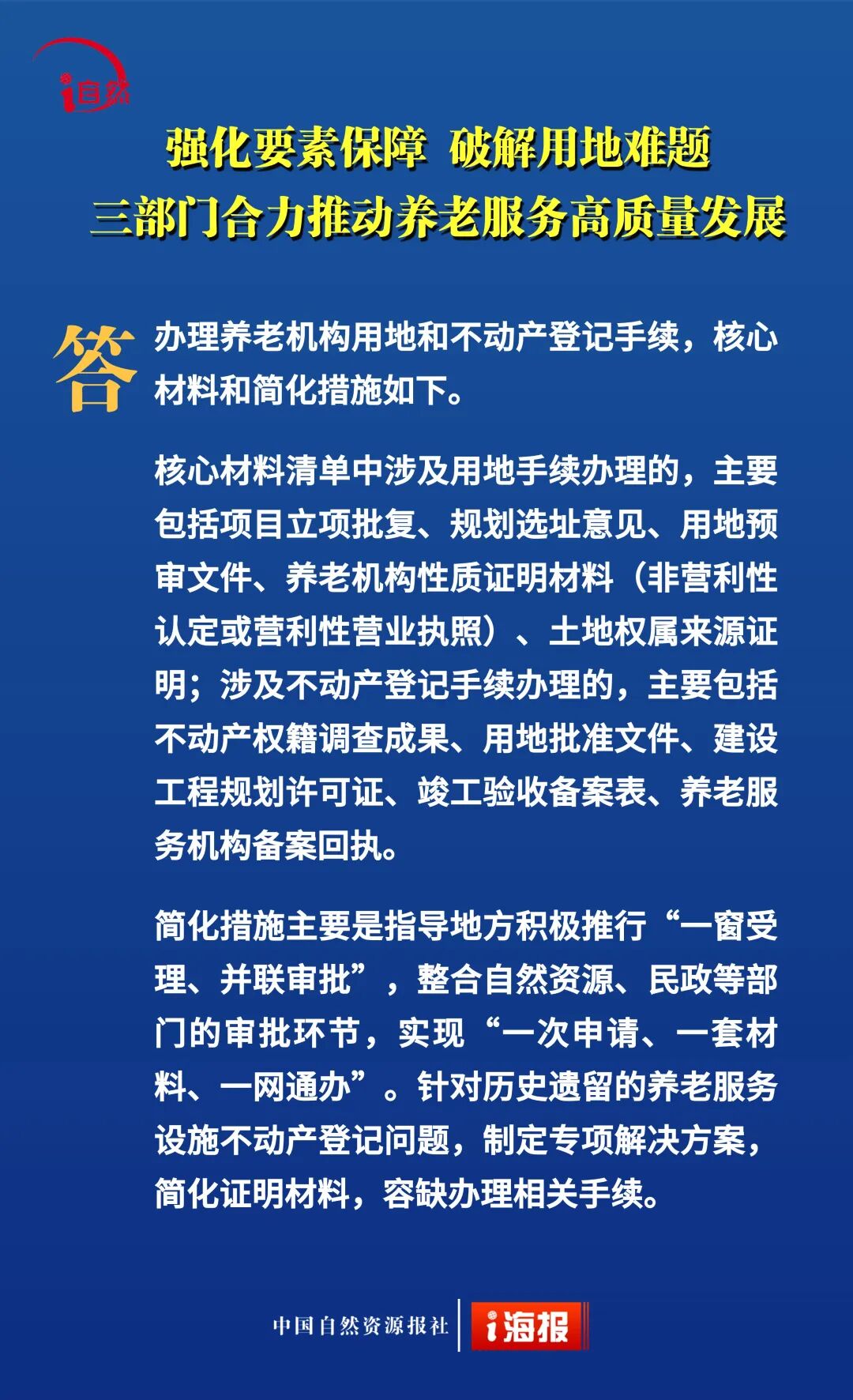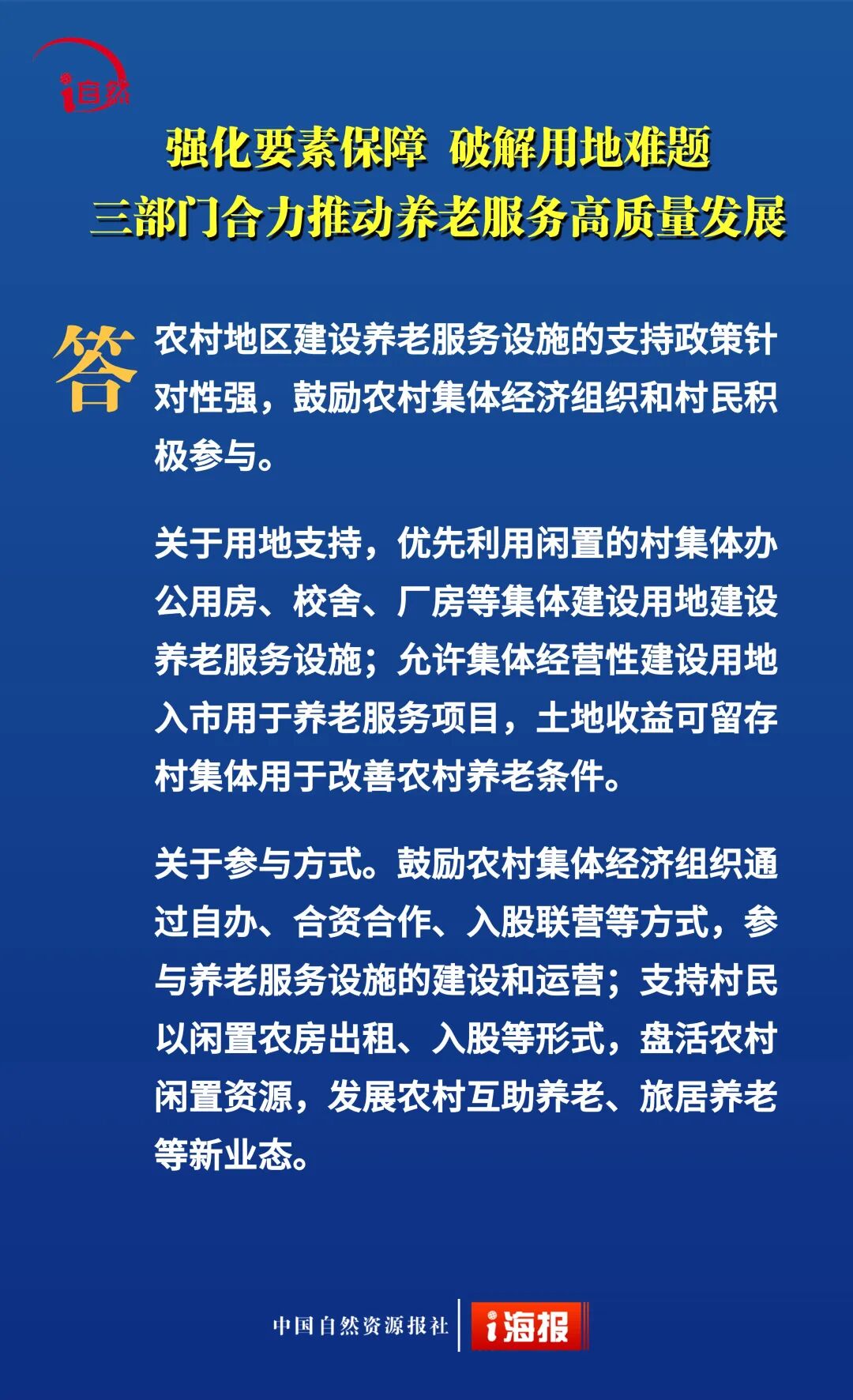 近日,自然资源部、民政部、国家卫生健康委联合印发《关于深化自然资源要素保障 支持养老服务改革发展的若干措施》,提出18条政策举措,降低用地成本、盘活利用存量空间、推动养老服务保障,从“基础兜底”向“提质增效、降负纾困”升级。今天10个问答带您全面了解。