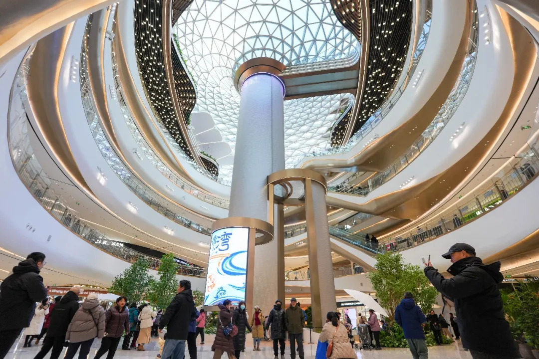 “湾里”项目位于北京城市副中心文化旅游区,紧邻北京环球度假区,助力北京国际消费中心城市建设,为北京城市副中心文旅区注入新的消费动能。图为市民在“湾里”购物休闲。新华社记者 鞠焕宗 摄