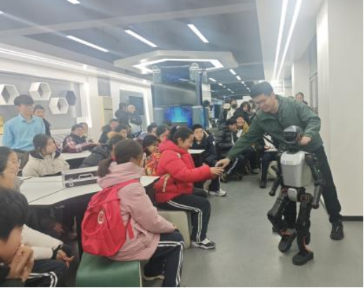 1月22日,由北京教育系统关工委组织的“百所中小学校科普教育高校行”活动走进北京工业职业技术学院。来自密云区北庄中学与朝阳区三里屯一中的118名中学生,来到学校北斗时空信息产业学院、智能机器人实训基地等青少年科普教育基地,通过沉浸式体验获取科学知识、感受科技魅力。