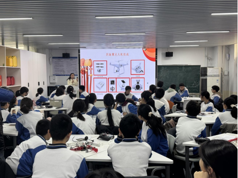 为了让科普课程契合初中生的认知节奏与兴趣焦点,学校精心设计科普“课程菜单”。无人机教研室主任曹明兰介绍:“我们以渐进式体验为主线,设计了原理讲解、模拟操作与真机飞行三个环节,确保学生在安全、有序的环境中完整体验无人机技术的全过程。”来自密云区北庄中学的学生张鑫怡在体验后兴奋地说:“以前只在视频里看过无人机,今天不仅能亲手操控,还了解了它背后的空气动力学原理,感觉科学一下子‘活’起来了。”