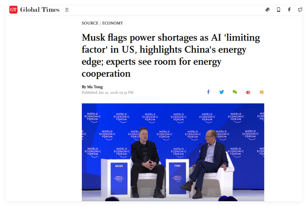 此前,诸如埃隆·马斯克和黄仁勋等美国人工智能领域的知名企业家,也表达过对中国能源发展优势的称赞,以及对美国在这方面裹足不前的担忧。