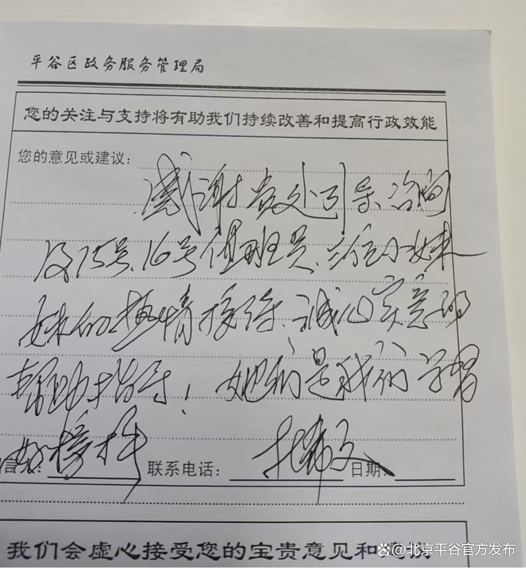 群众之事无小事,细微之处见真情。下一步,区市场监管局将持续以群众需求为导向,紧扣政务服务标准化、规范化、便利化建设要求,不断优化办事流程、提升服务质效,用实际行动践行市场监管部门的责任与担当,为平谷区营商环境优化升级注入活力。