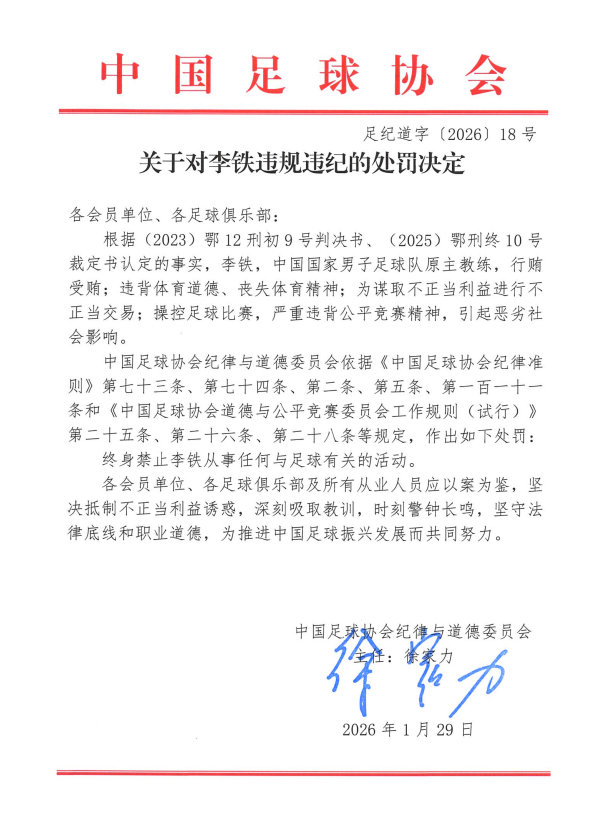 1月29日,公安部、国家体育总局与中国足协联合召开足球行业“假赌黑”专项整治行动新闻发布会,公布第二批禁足名单及俱乐部处罚决定。