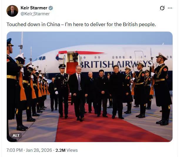 英国首相斯塔默1月28日抵达北京,正式开启访华之旅。这是英国首相时隔8年再次访华。