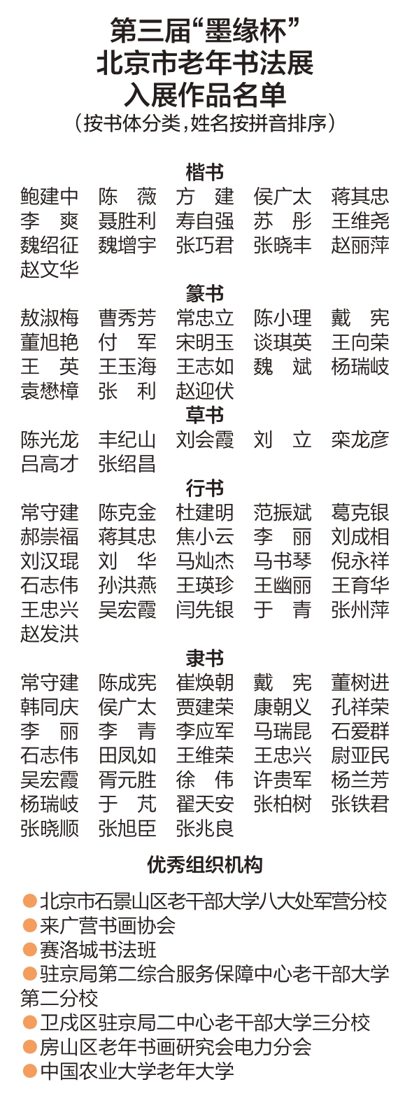 第三届“墨缘杯”北京市老年书法展入展作品揭晓