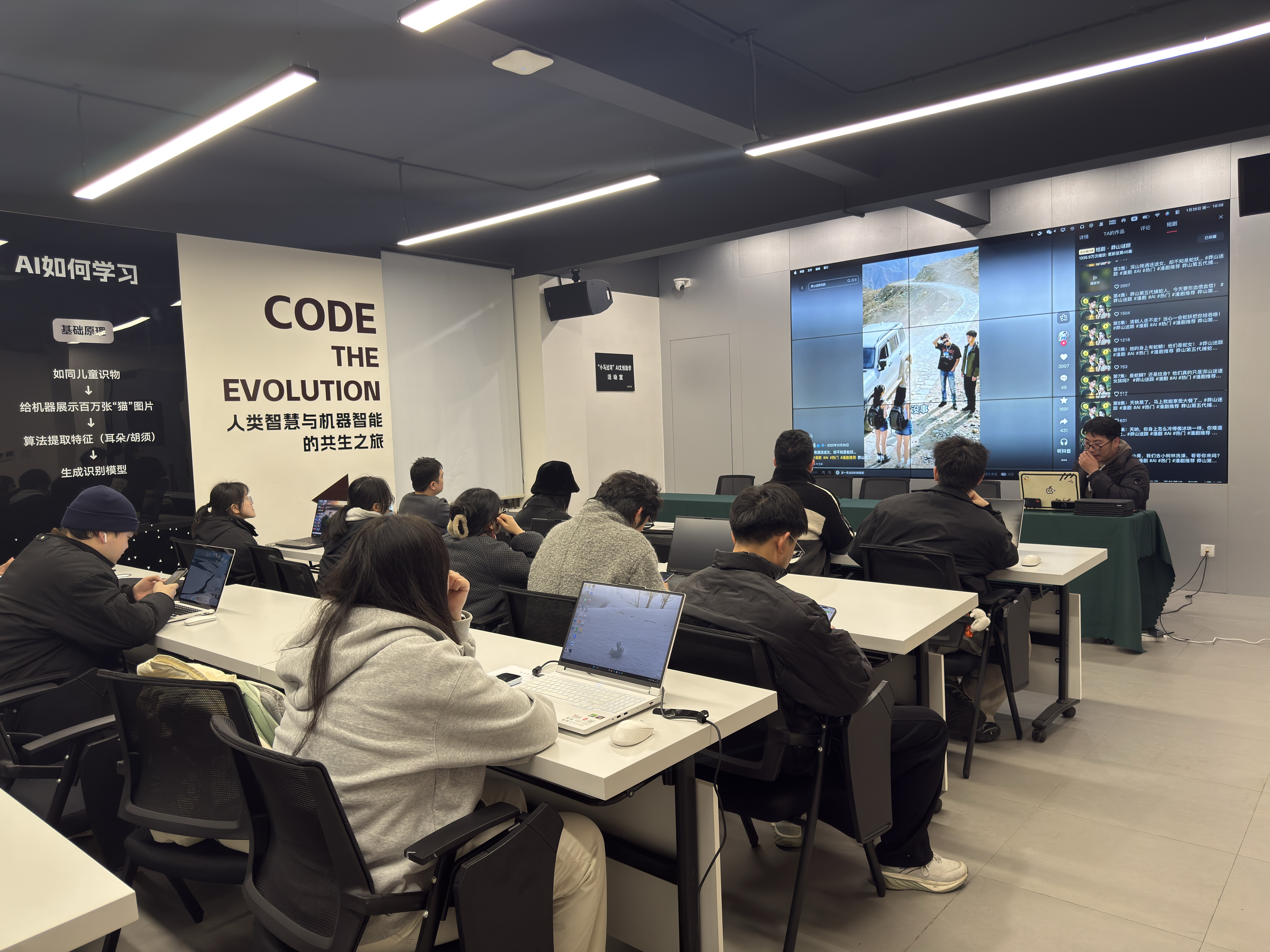 夜幕降临,浙江省瑞安市人工智能双创中心内,学员们正在学习AIGC短剧制作。聚焦市场需求与青年意向,瑞安近日开办回乡大学生寒假专场培训,设置无人机驾驶、咖啡师等培训项目,吸引128人参与。