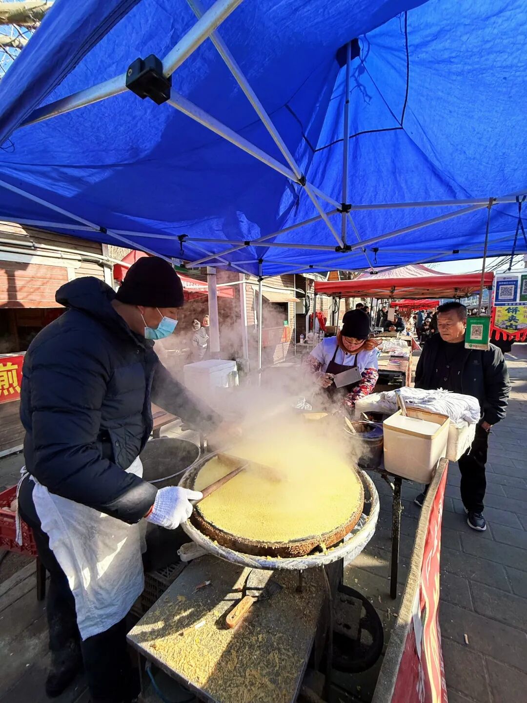 在陇驾庄大集采买结束后,大家往往不会直接离开,品尝小吃早已成了默契惯例。一碗皮薄馅大的鲜肉小馄饨、几串滋滋冒油的现烤羊肉串,或是一块外酥里嫩刚出锅的糖油饼,任选一样幸福感都爆棚!