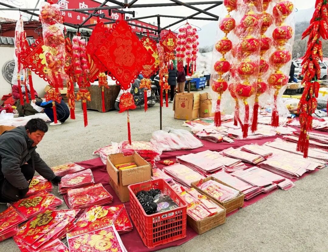 要说门头沟的宝藏大集,西杨坨大集必须拥有姓名!百余个摊位整齐排列,琳琅满目的商品让人目不暇接。风味十足的地方特产、色泽鲜艳的瓜果蔬菜、种类齐全的干果炒货,还有红彤彤的春联、福字,一走进来就被浓浓的新年氛围包裹住。