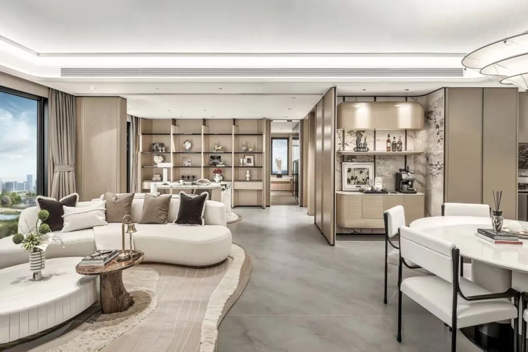 项目设置建筑面积约97至165平方米三居、四居纯改善户型。记者走进建筑面积约118平方米的样板间,南向约11.2米宽阔采光面让阳光洒满公共区域,LDKG一体化设计使客厅、餐厅、厨房空间更显通透,独立储藏间与家政间的设置则巧妙解决了居家收纳难题。