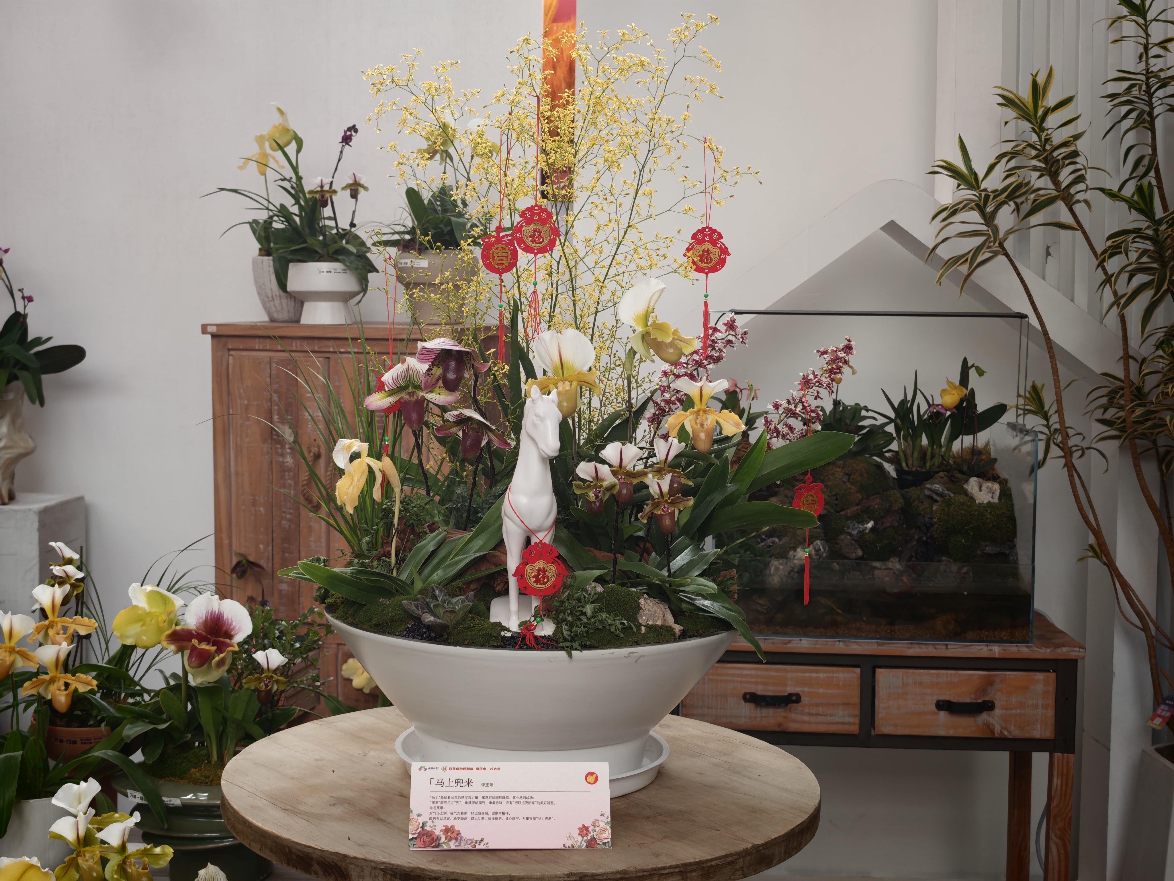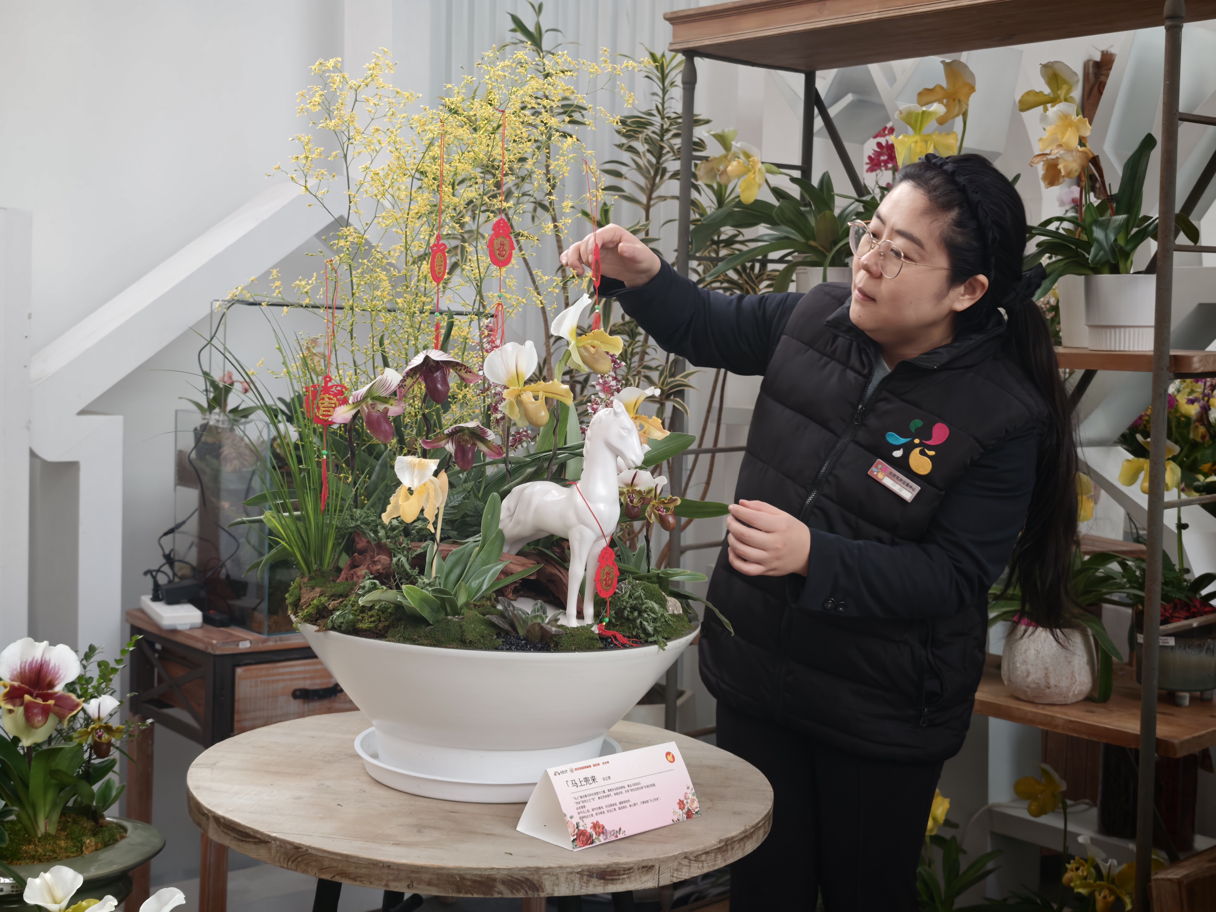同步推出的“马上花开”主题组合盆栽同样备受关注。整体以蝴蝶兰花枝模拟骏马飞扬的鬃毛,呈现奔马昂首之姿,寓意“马到成功,花开富贵”。“我们推出的不仅是花卉,更是可体验、可讲述的文化符号。”北京花卉交易中心相关负责人表示。