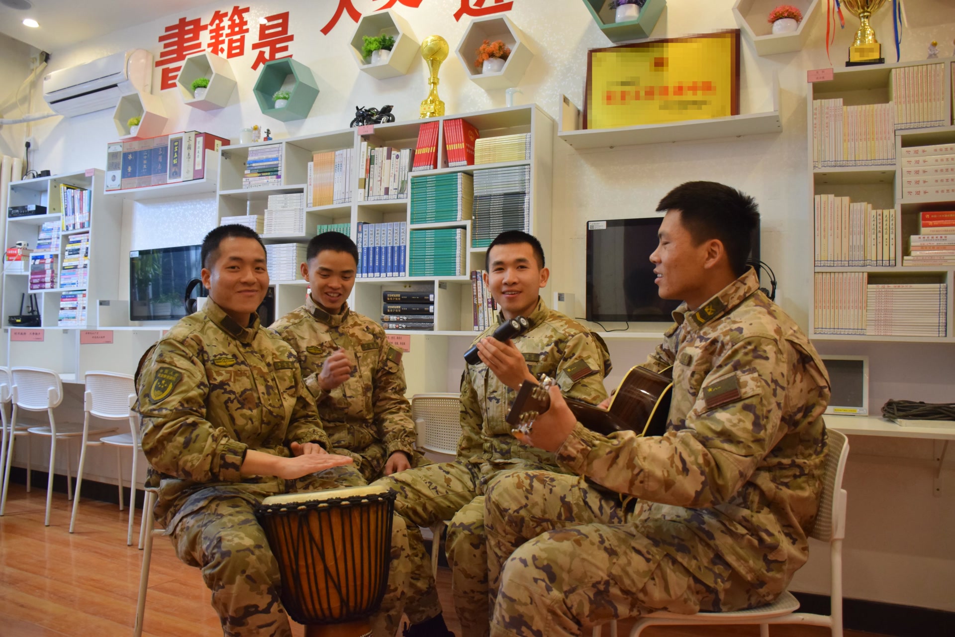 训练场上是猛虎,文体活动显身手。周末休息时间,大队组织丰富多彩的活动。同时开放“书香军营”阅览室,举办“悦读分享会”,让新兵在书香中充实精神世界。新兵们在放松身心的同时,新老战友的心贴得更近了,集体归属感显著增强。