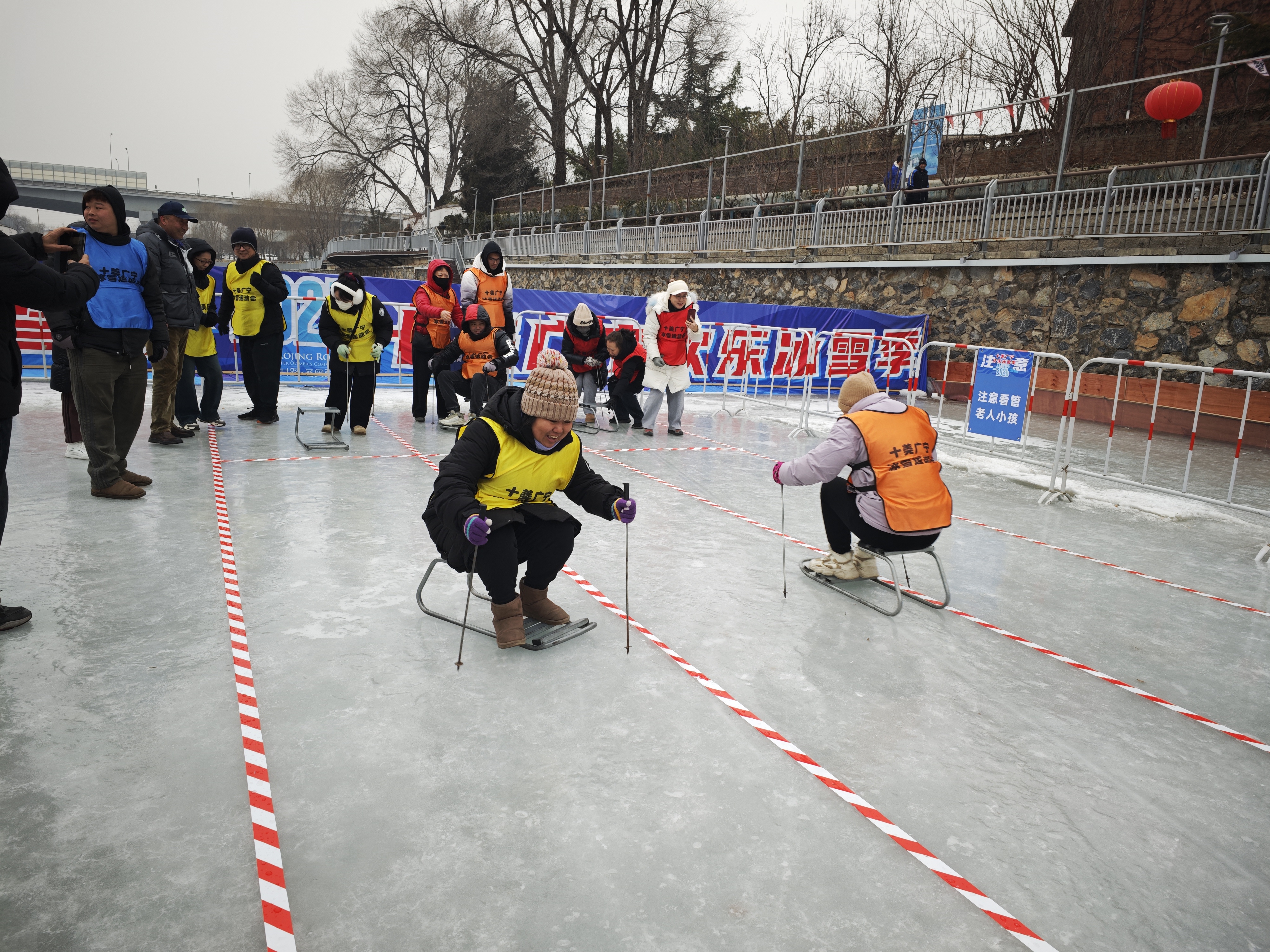 1月30日,石景山区广宁街道“十美广宁·欢乐冰雪季”冬奥社区杯冰雪趣味运动会开赛,为辖区居民送上一份别样的冬日欢乐。本次活动紧扣群众需求,因地制宜打造特色冰雪场景,精心设置冰壶赛、冰上爬犁接力赛、冰上龙舟赛、冰上保龄球等趣味项目,让每一位居民都能找到属于自己的冰雪乐趣。
