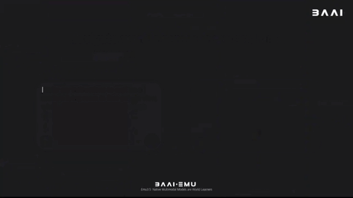 • 2025年10月,推出原生多模态世界模型Emu3.5,实现从 “预测下一个词元” 到 “预测下一个状态” 的能力跃迁,从长视频数据中学习世界演化规律,提出多模态Scaling新范式。