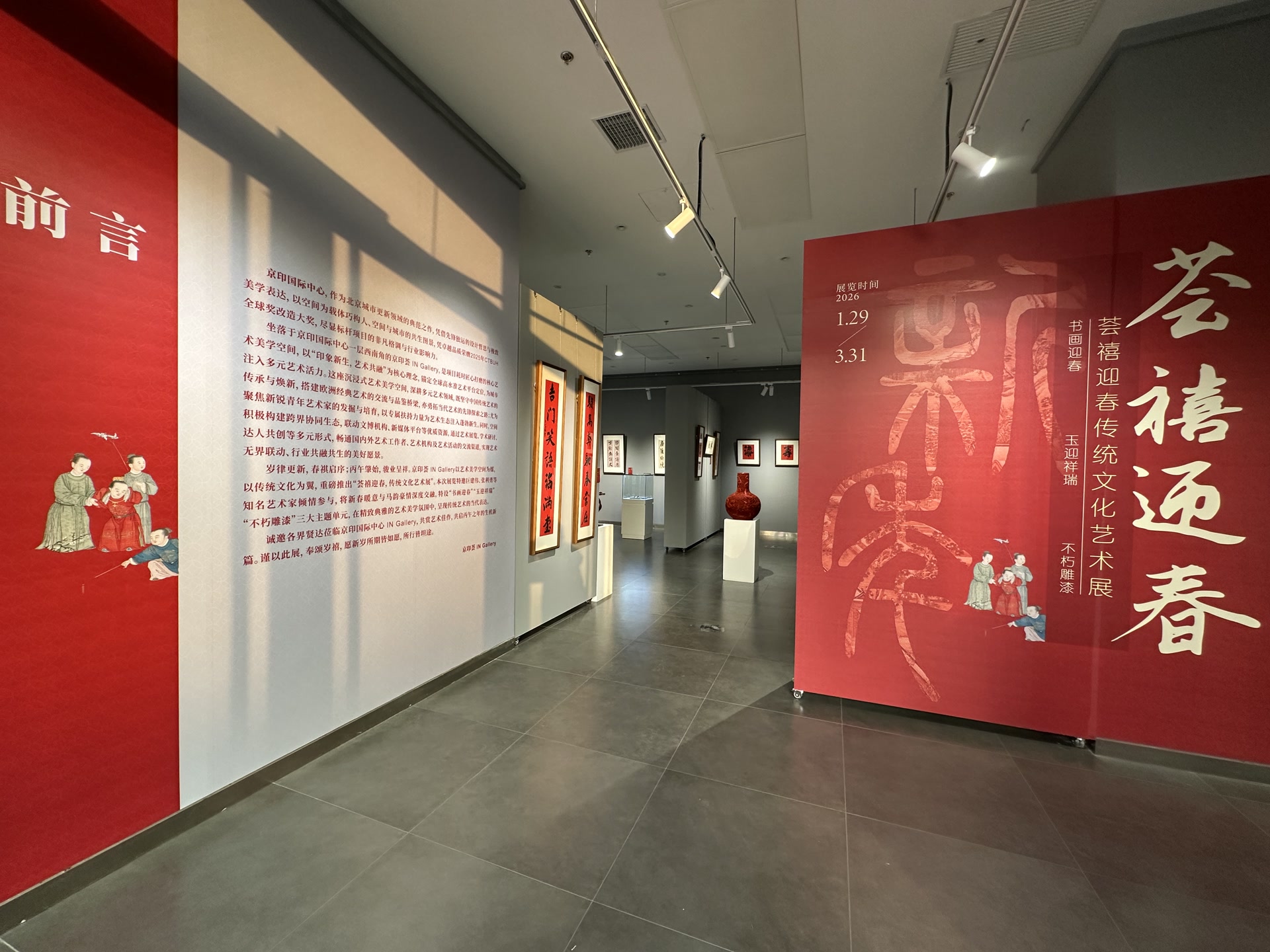1月29日,“京印荟IN Gallery”艺术空间,以“贺新春”为主题推出开年首展 “荟禧迎春·传统文化艺术展”,展览分为书画迎春、玉迎祥瑞、不朽雕漆三个单元。凝聚着智慧与情感的楹联与绘画、充满灵动与宁静的玉器、追求淳朴与自然的雕塑都是本次展览的亮点。