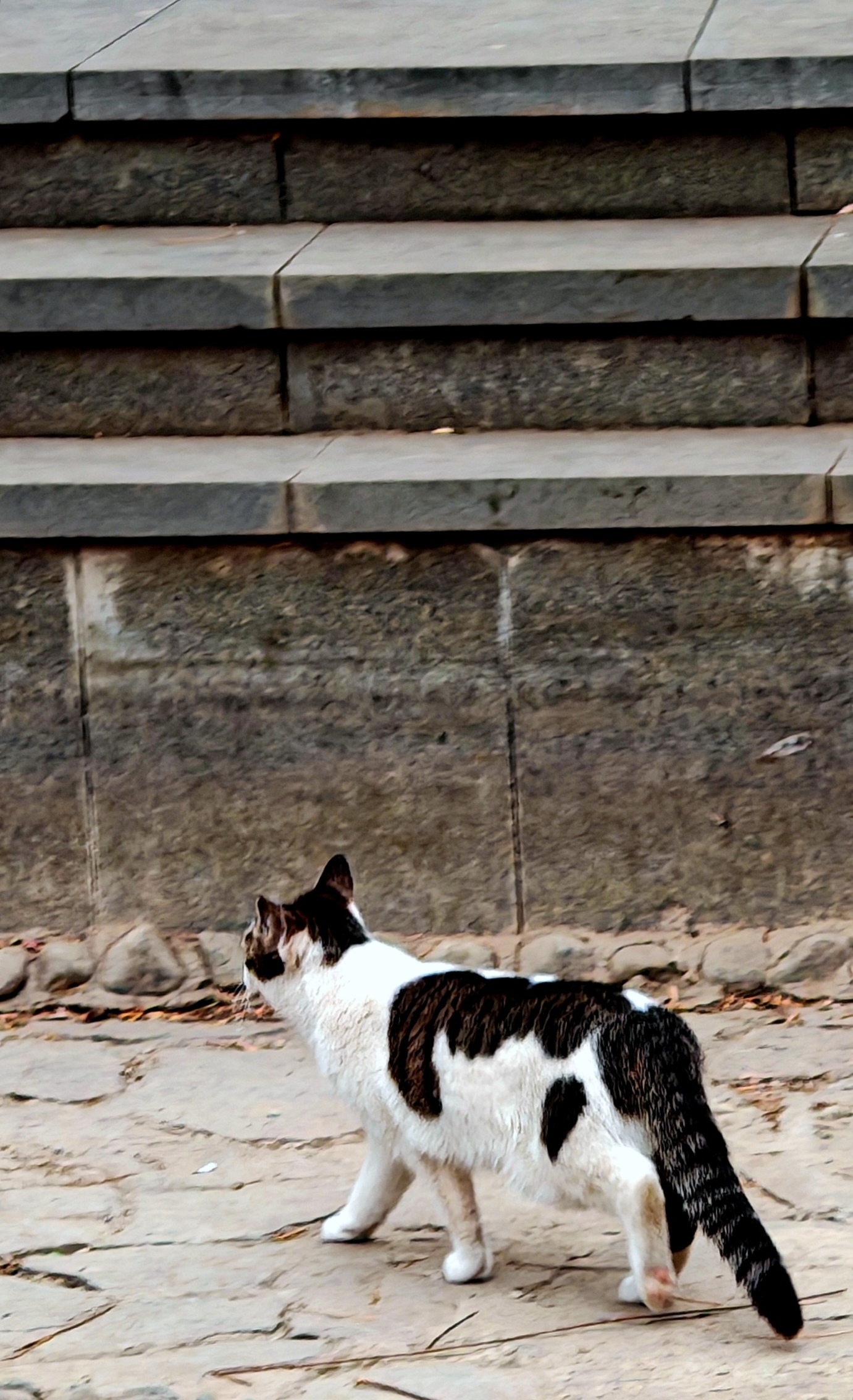 在小区里,和流浪猫对视了一会儿。