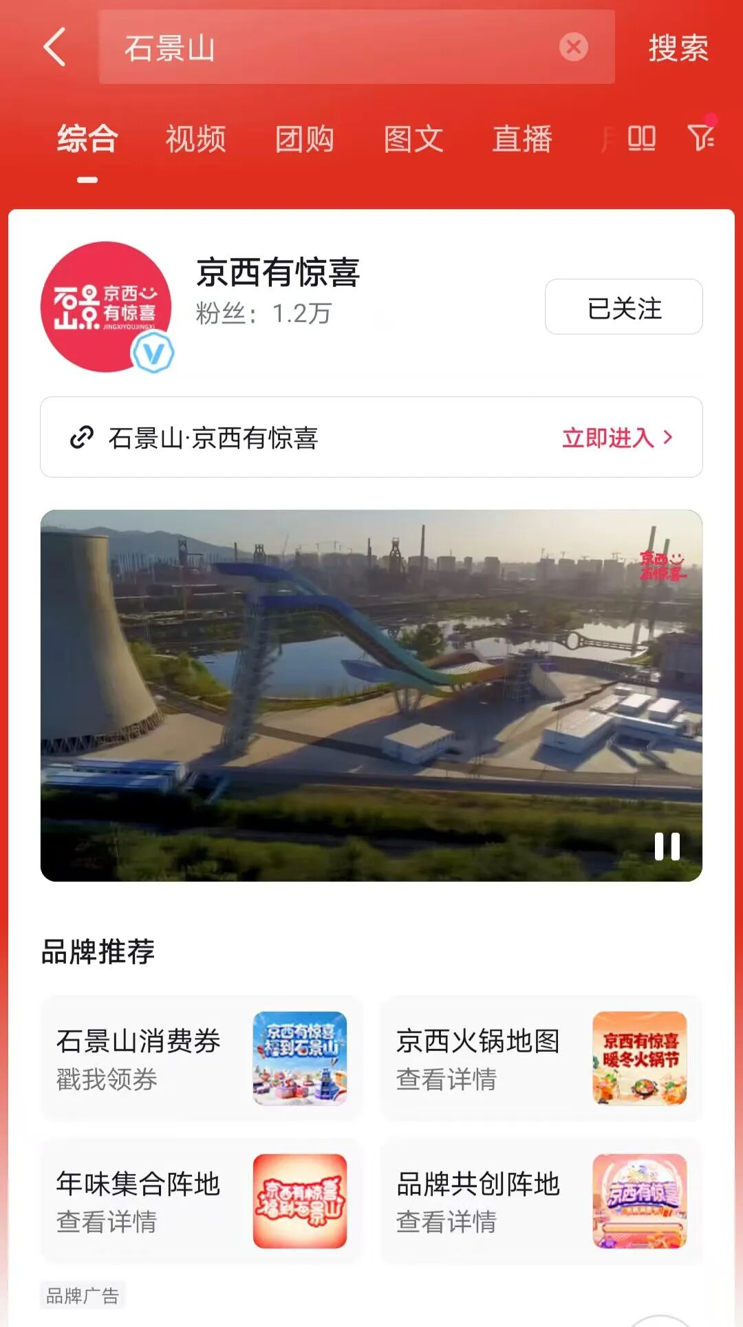 上抖音搜索“石景山”