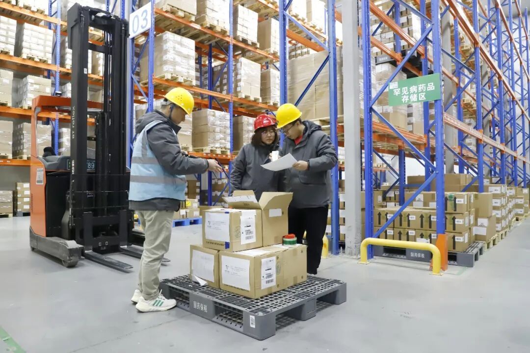 工作人员核对罕见病药品并入库。