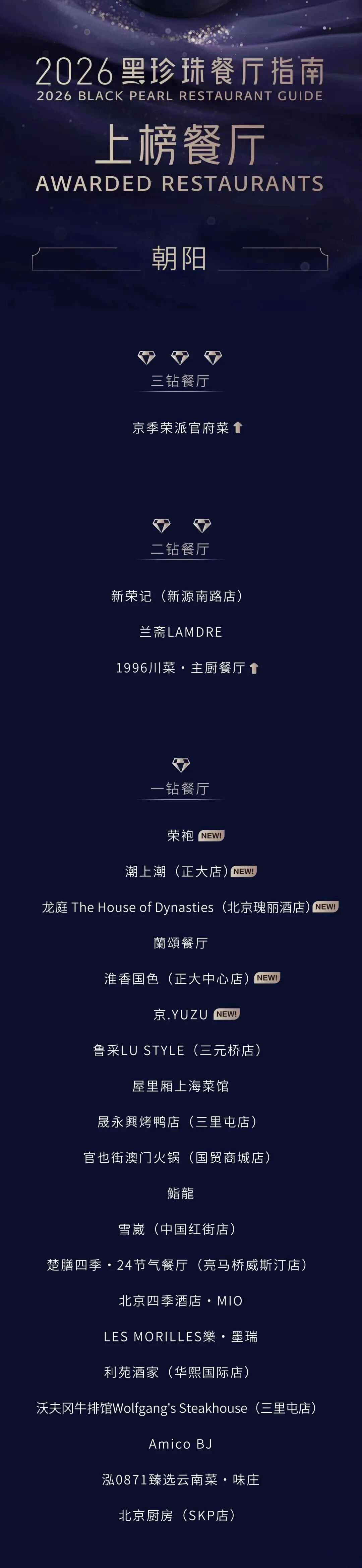 2026北京黑珍珠餐厅指南发布,北京上榜餐厅近七成在朝阳!