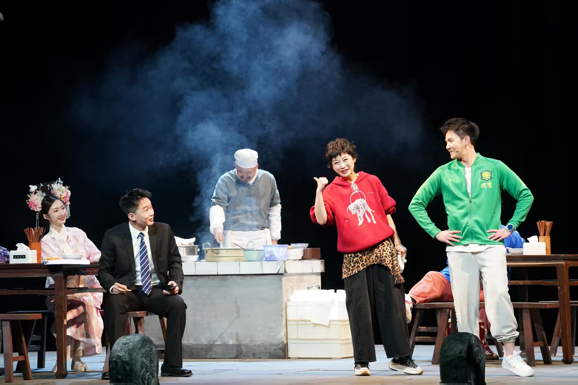 自2019年首演至今,《豆汁儿》已在舞台上“熬煮”了八年。这出戏能持续吸引观众,离不开它与时俱进的生命力。从人工智能、元宇宙,到直播探店、机器人服务,不断融入的时代符号让这部八年老戏始终与当下同频。台词接地气、有笑点,更有观众感慨:“完全不像一部八年前的老作品,丝毫没有与当下脱节之感,反倒如新作般鲜活,充满诚意。”