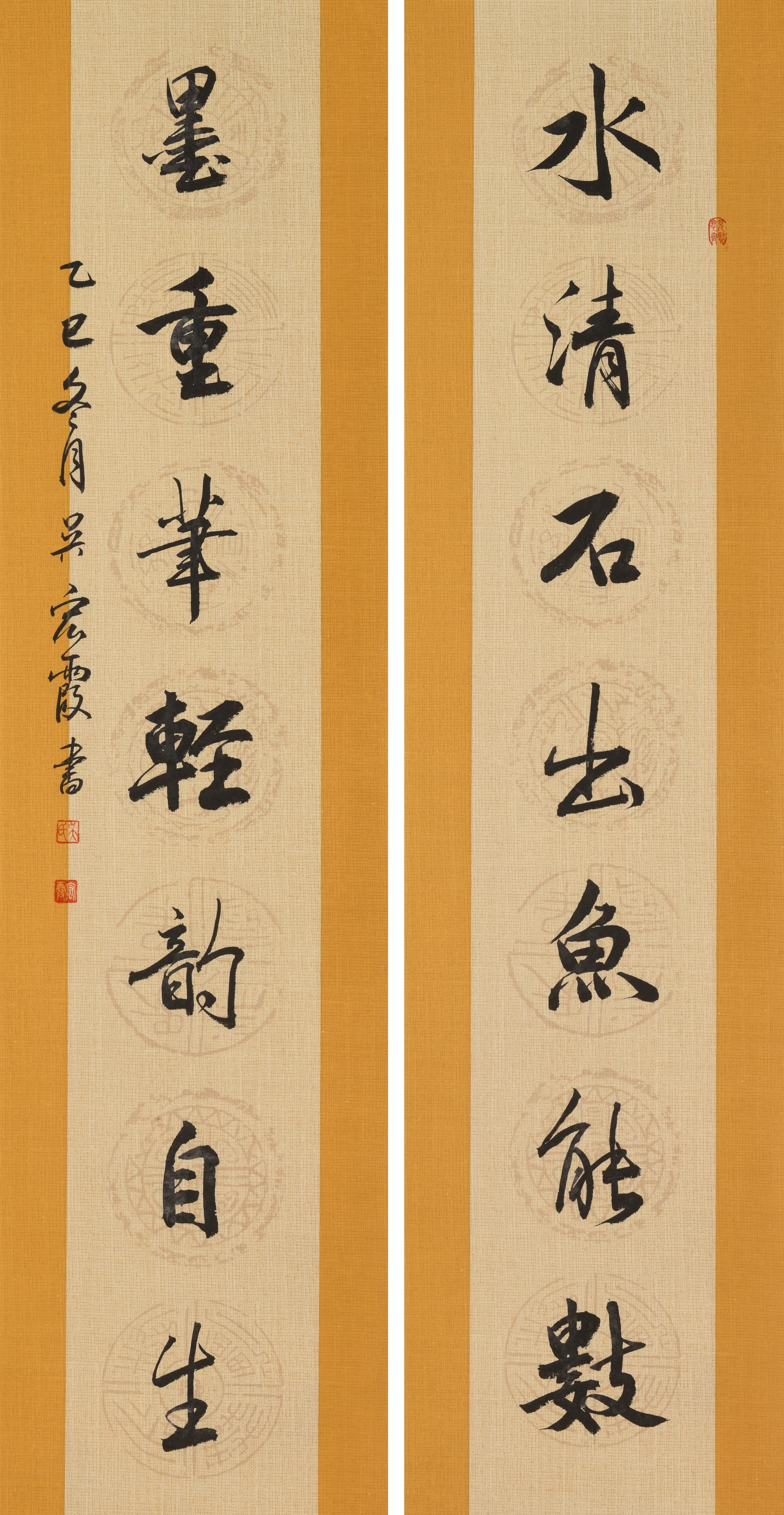 行书 吴宏霞 62岁 《水清墨重》对联