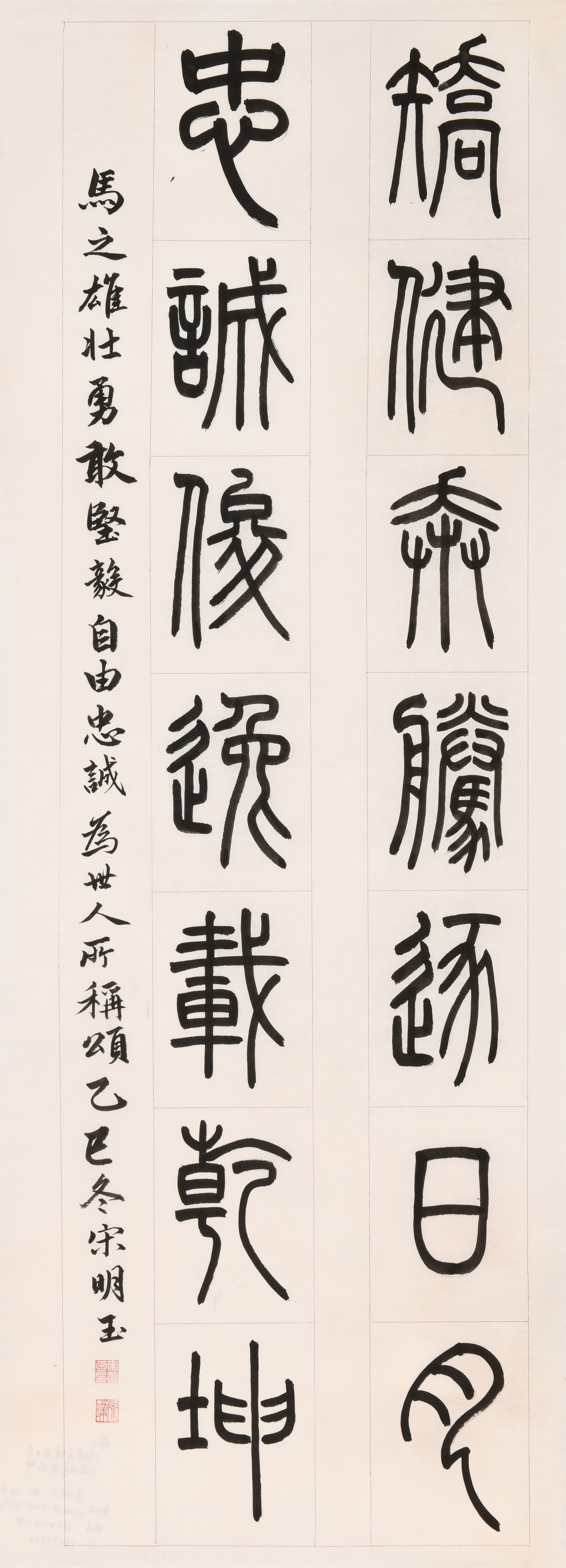 篆书 宋明玉 66岁 《矫健忠诚》对联