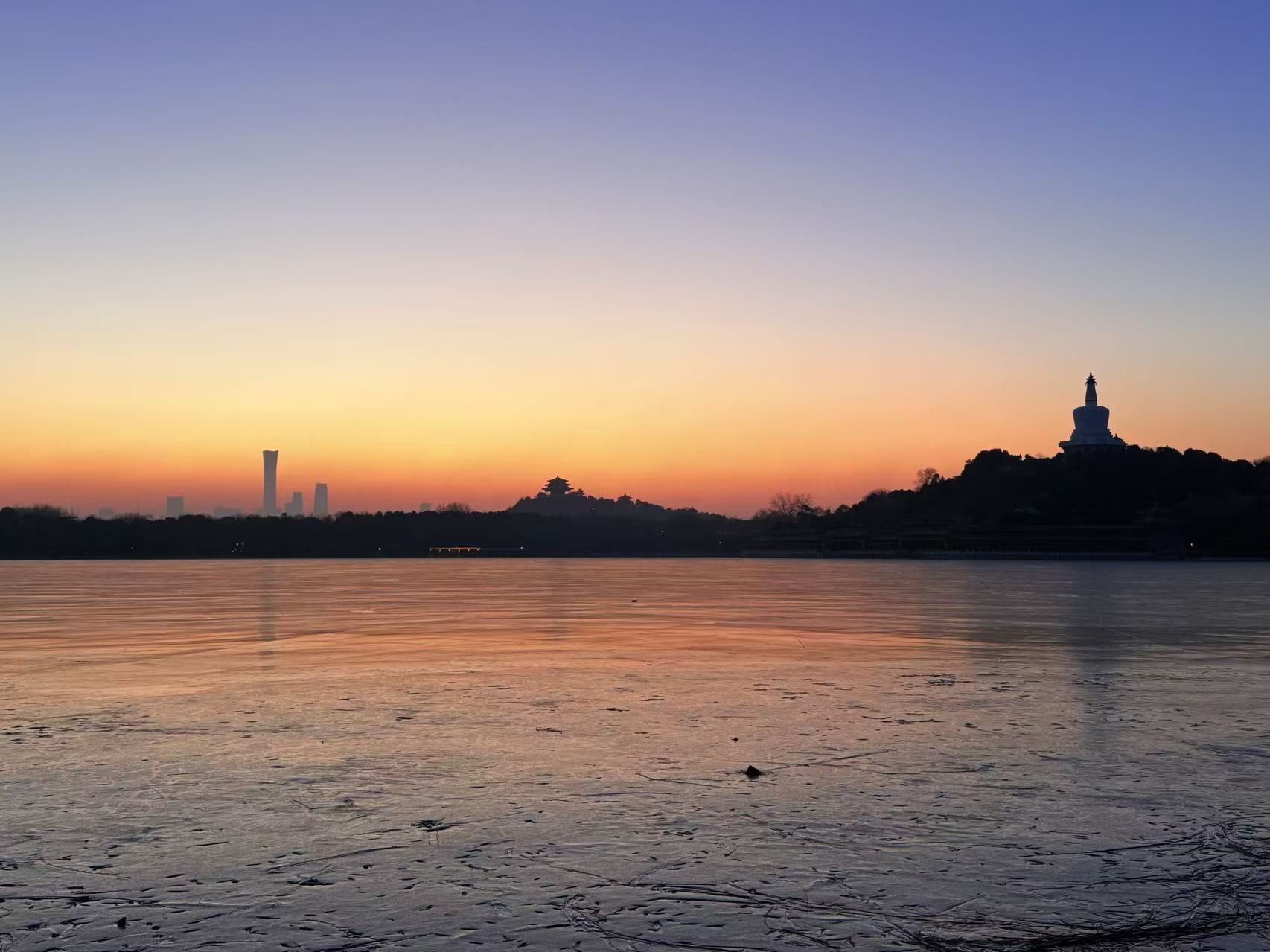晨曦染红故宫、北海、玉渊潭,北京在晨光中醒来