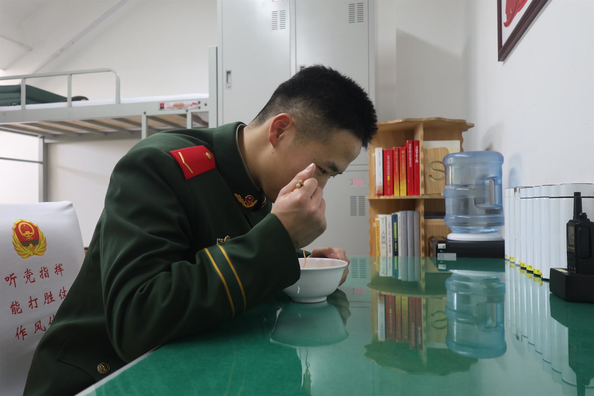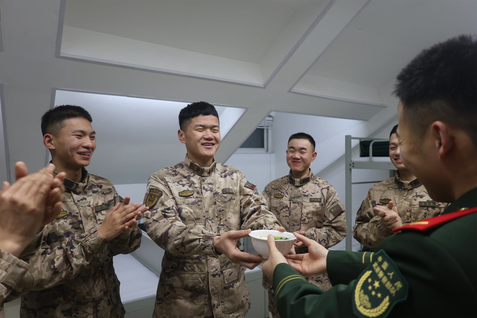 中午下哨回到班里,他推开门,全班战友已整齐站在两侧。没有蛋糕和彩带,只有班长端来一碗卧着荷包蛋的长寿面。“知道你今儿跟哨,这面祝你军旅顺遂。咱一支队的兵,胃和心暖了,站岗的腿才稳。”捧着这份特殊的生日面,陈仁杰喉头哽咽:“原来‘家国’不是空泛的词,它就是战友的手、滚烫的面,是哨位上人们信任的目光。这个生日,我一辈子忘不了。”