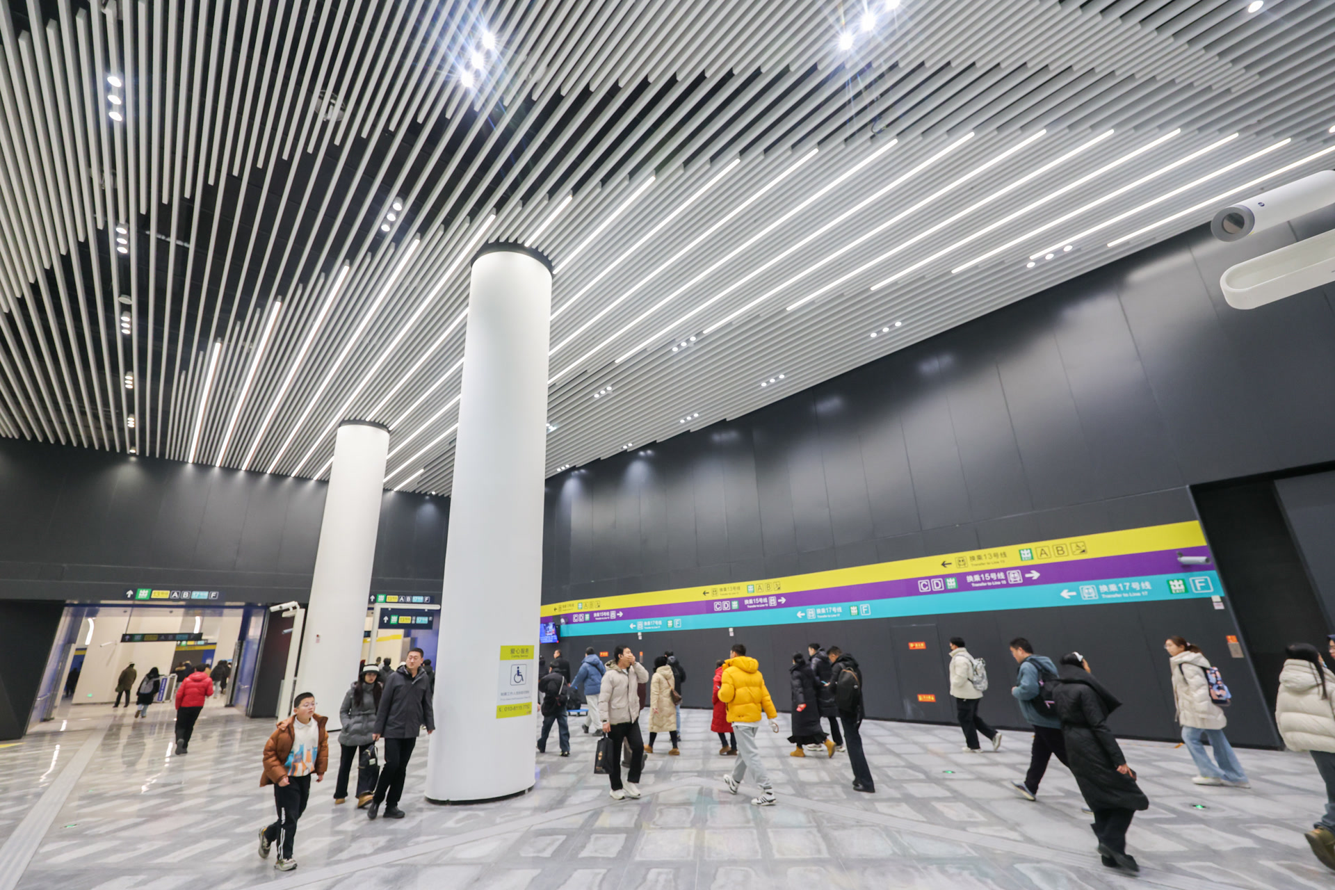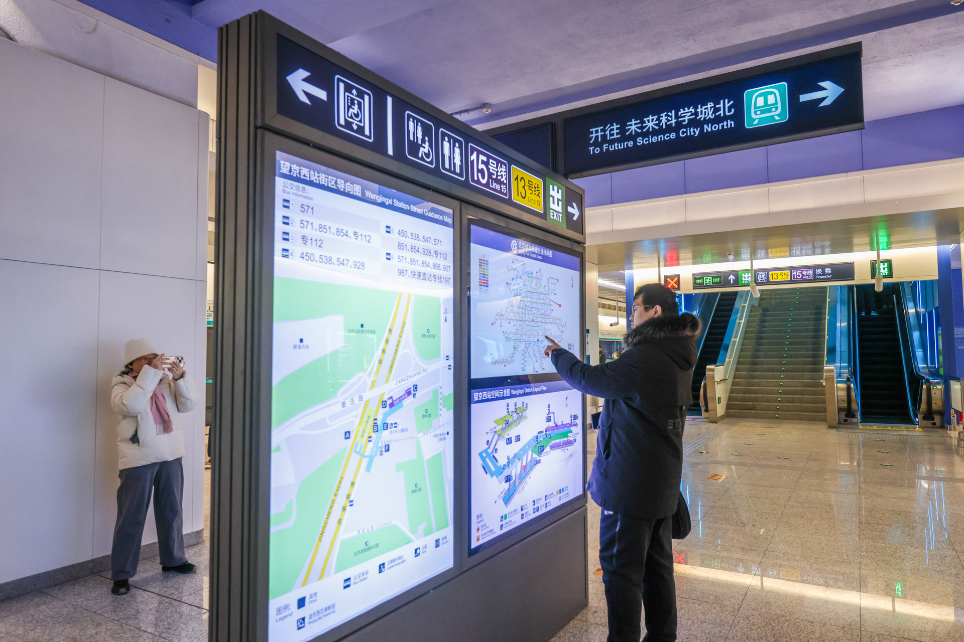 北京地铁介绍,为配合17号线望京西站开通,车站提前梳理车站的客流流线、换乘导向,细化完善“一站一方案”。针对三线换乘后换乘路线改为地下平层空间行走等情况,对13号线、15号线既有导向标志进行全面更新,共计调整既有导向标志136张,新增42张,构建起立体化、多层次的换乘指引体系。车站还将在早晚高峰时段增派值守力量,同步循环播放站内广播,形成“听得到、看得见”的立体指引。