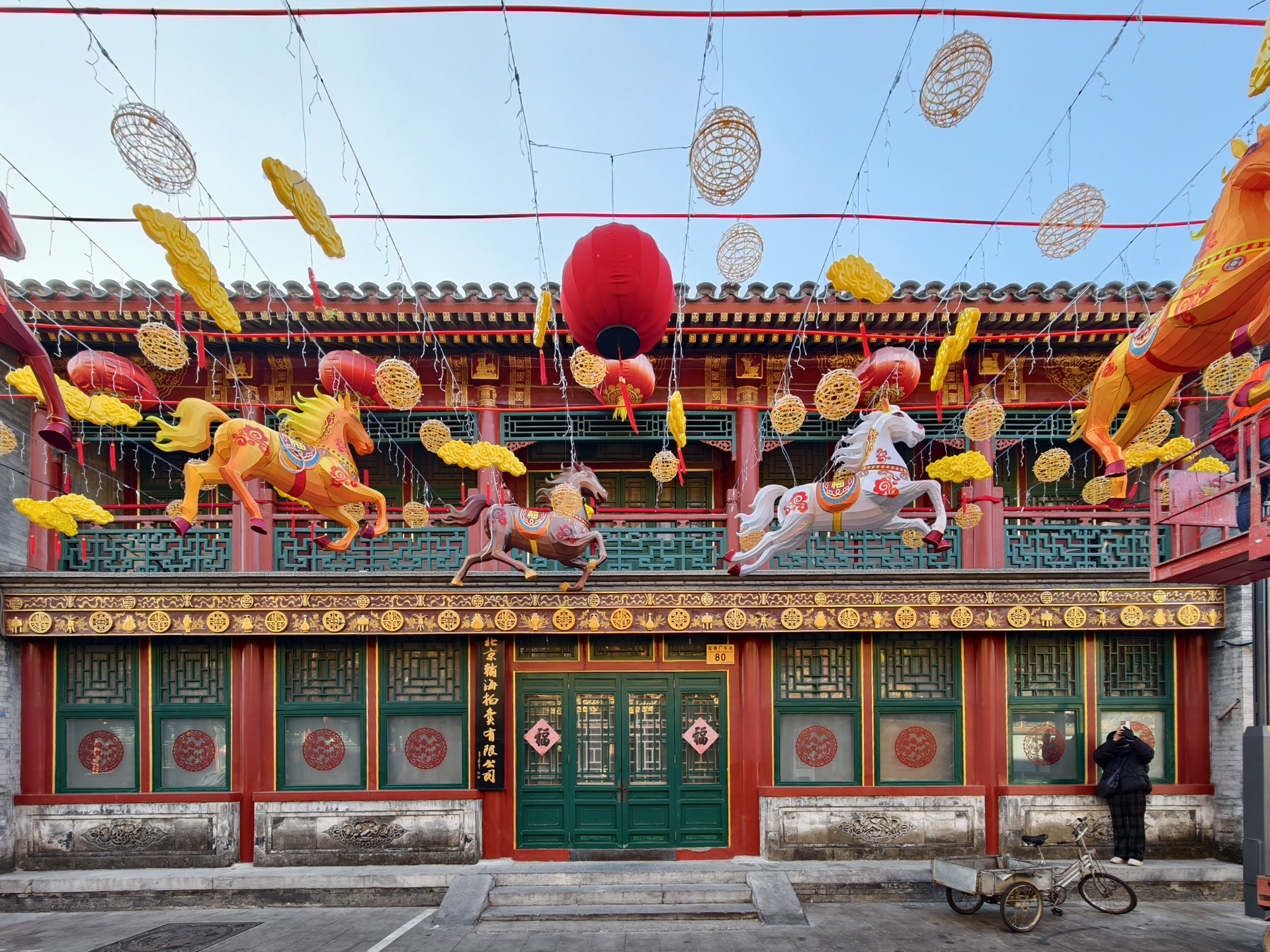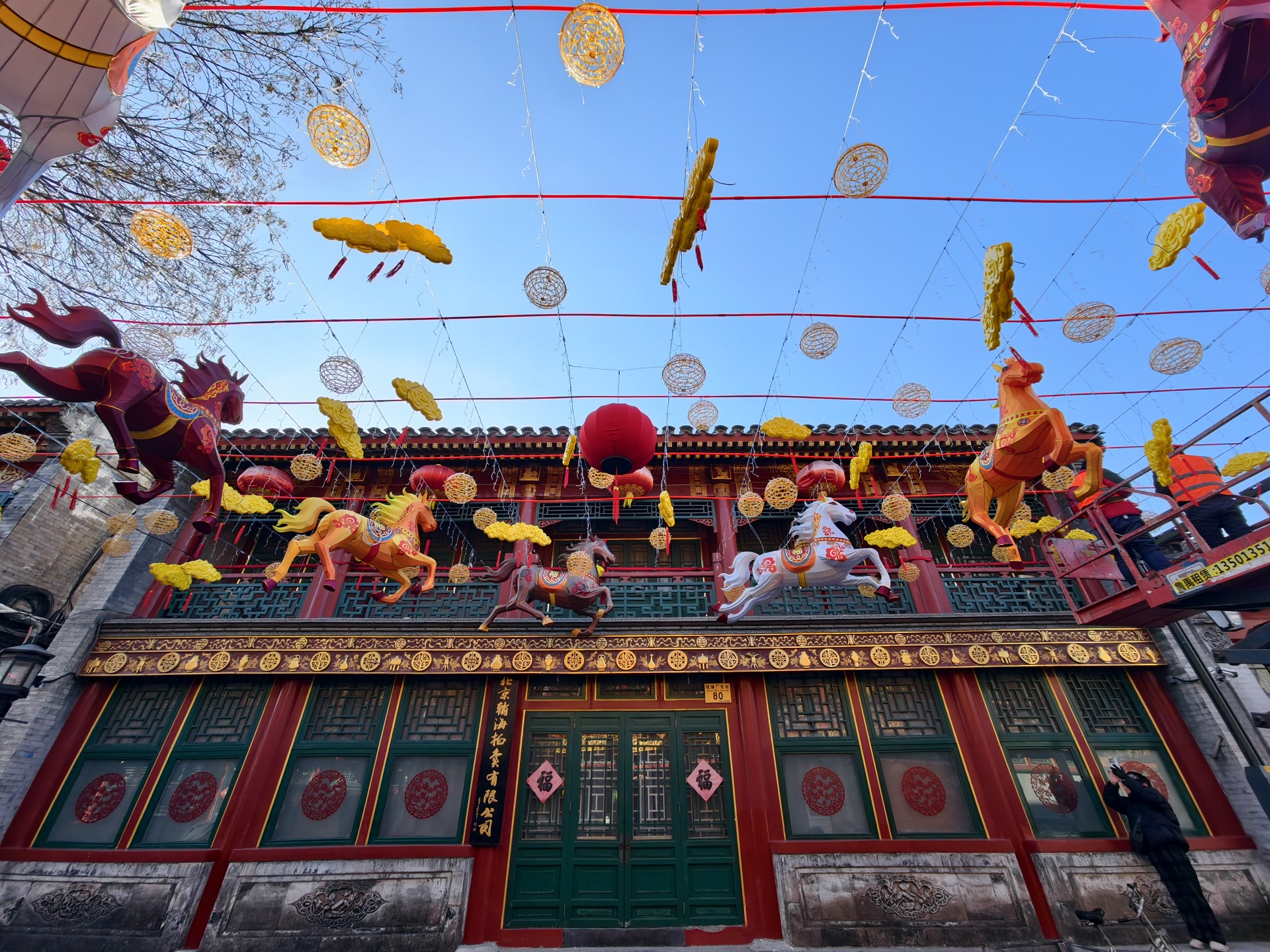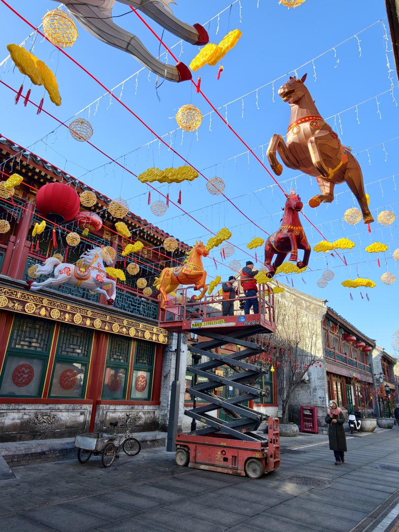 年关将近,北京城的年味儿越来越浓。1月31日上午,在西城区琉璃厂古文化街,过路的人们都会被一排排大红的灯笼吸引去目光。再往街道深处走,工人们正在安装着马年的装饰彩灯,一片喜庆祥和之气扑面而来!
