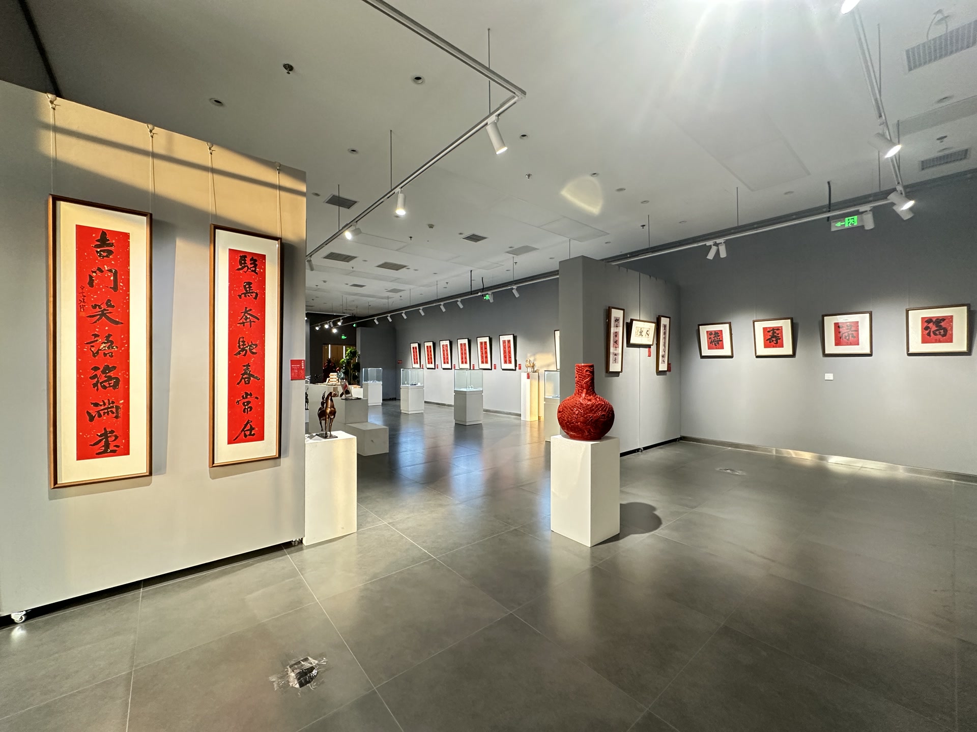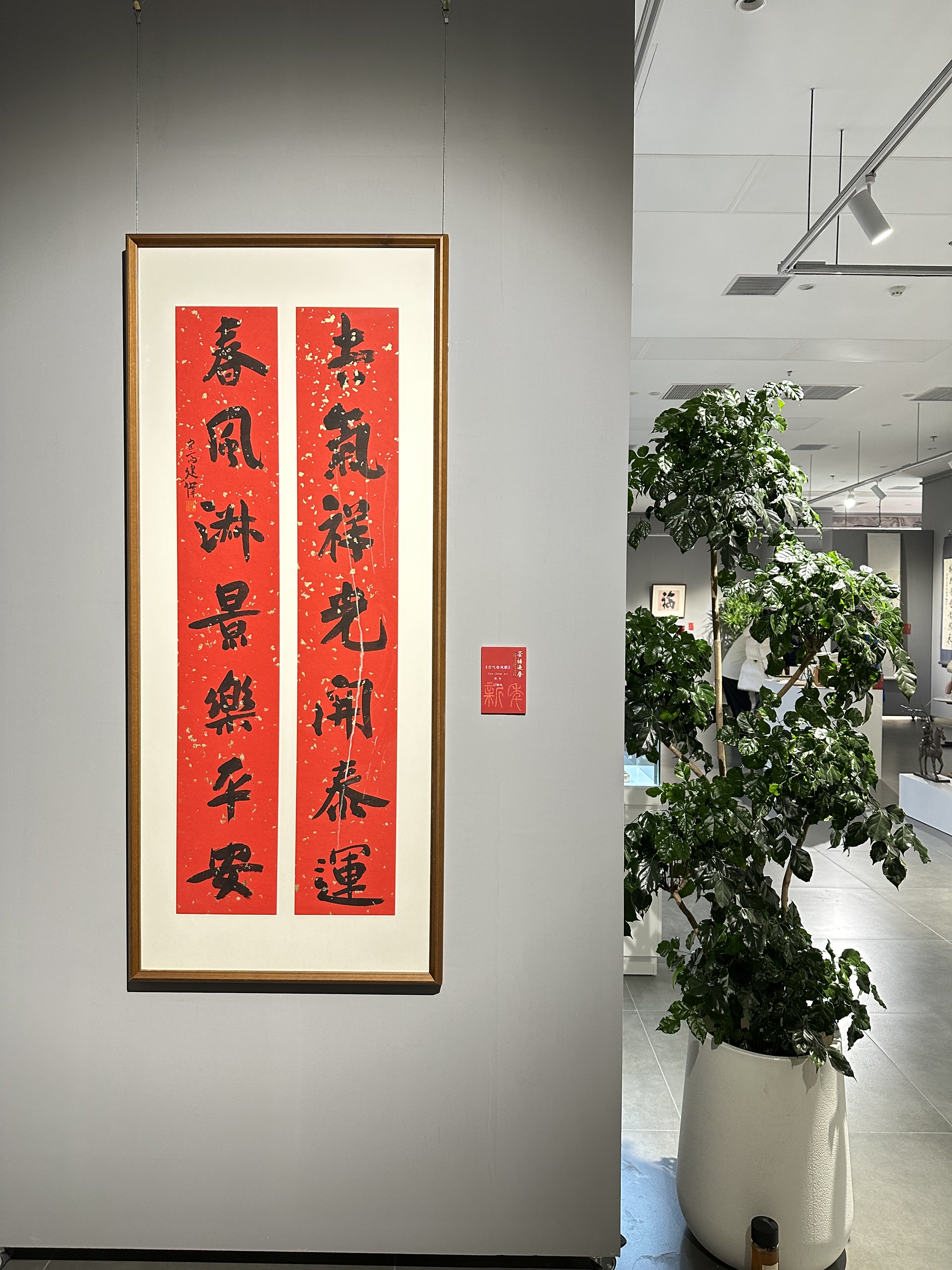 巨建伟作为中青年艺术家的代表,担负着传统文化的传播与弘扬,与此同时,更以创新为笔墨,让传统美学在当代语境中鲜活生长,既守文化之根、承经典之韵,又融时代之思、拓表达之境,在传承与突破的平衡中,为传统文化的当代传播注入青年力量。本次他精心创作以迎新春为主题的《苍璧桃花联》《太华广陵联》《静闻笑对联》《骐骥千里》等书法作品30余幅,为“荟禧迎春·传统文化艺术展”增添了新春意趣与文化底蕴。