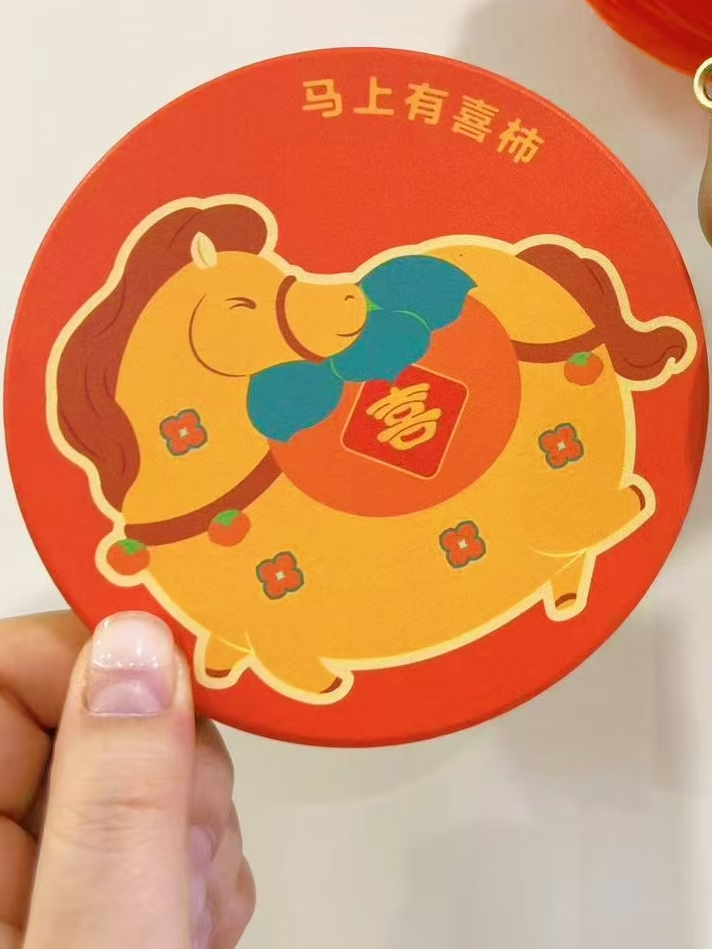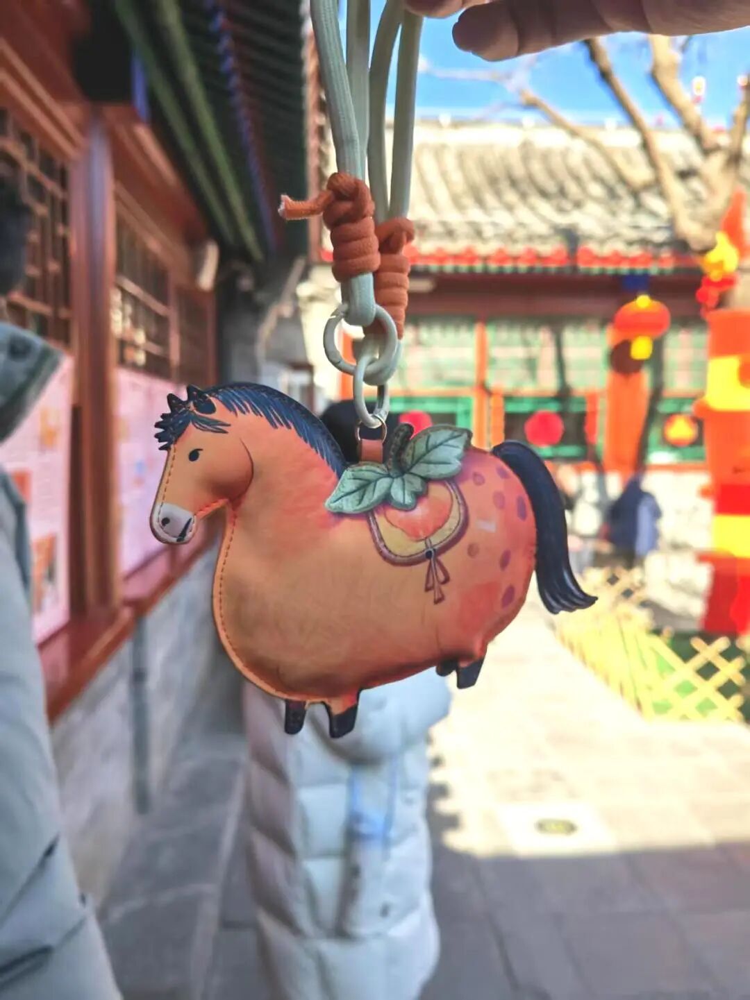 “马上有喜柿”香囊挂件(皮革版),因憨态可掬的可爱造型,被大家亲切地称作“福柿胖马”。它以小马为造型核心,融合丹柿经典元素,将“马到成功、事事(柿柿)如意”的吉祥寓意藏于细节之中,兼具文化内涵与新春氛围感;搭配同系列互动抽拉红包,设计精巧、年味十足,既彰显老舍纪念馆的京味文化特色,又贴合大众对新春年礼的美好期许,成为兼具颜值与寓意的新春优选。